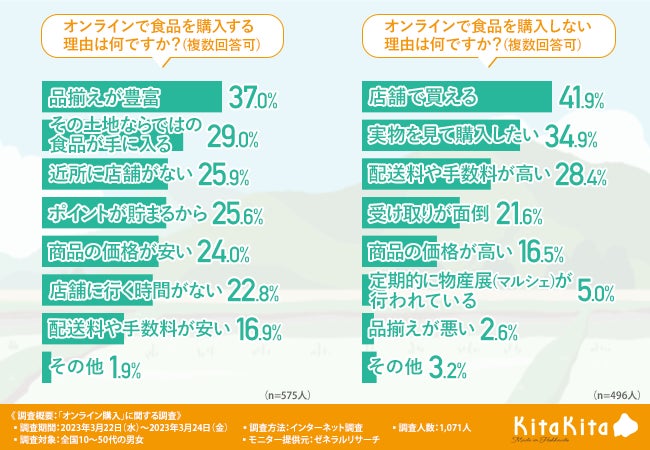 オンラインで購入する理由は『品揃えが豊富』『その土地ならではの食品が手に入る』