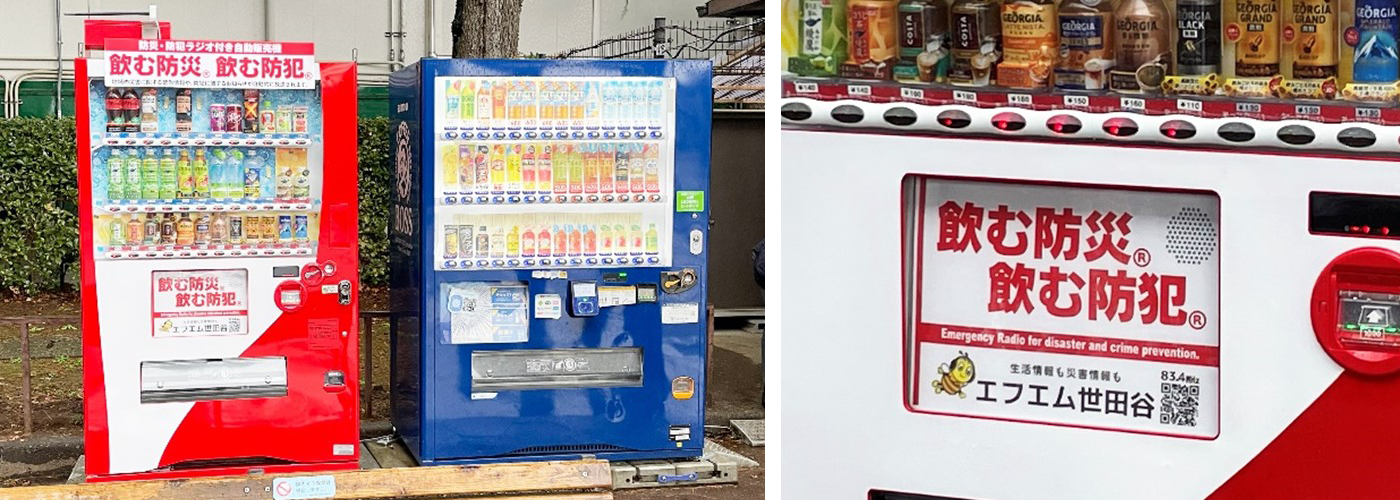 世田谷公園内に防災・防犯ラジオ付き自動販売機を設置。世田谷区民のための「地域メディア」として活動するエフエム世田谷(運営:株式会社世田谷サービス公社)が世田谷区と連携して放送する緊急情報を活用し、区内の街角の安心安全に貢献する自動販売機となりました。