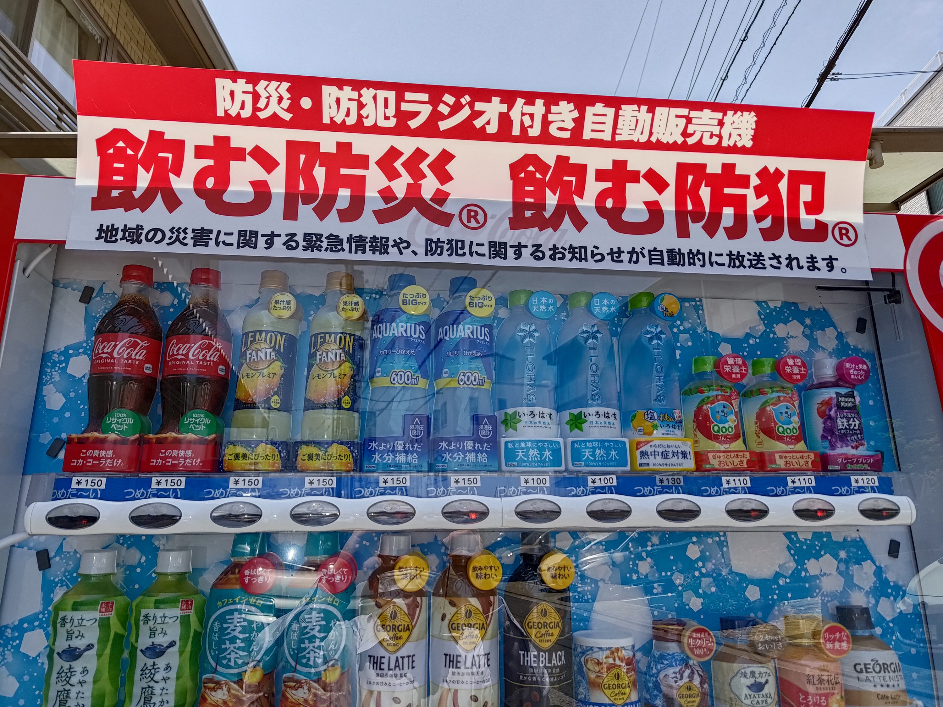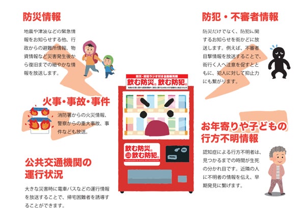 【災害時に活躍!】緊急地震速報などが流れる街中の「防災ラジオ付き自動販売機」広島県1号機設置