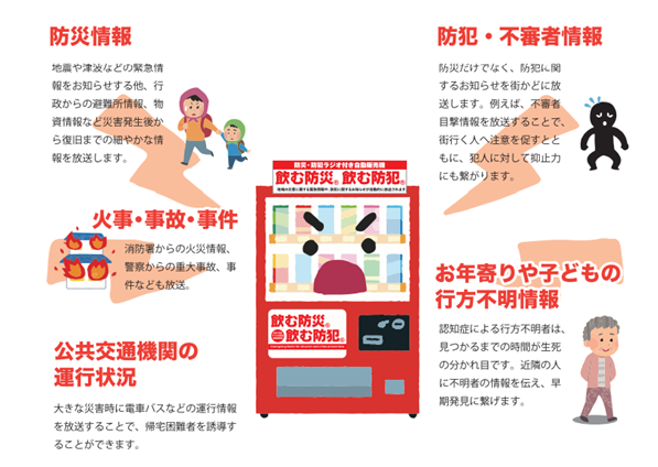 2023年5月26日(金)、広島エフエム放送株式会社(広島FM)の放送エリアである広島市西区己斐本町3丁目に防災ラジオ付き自動販売機が設置されました。