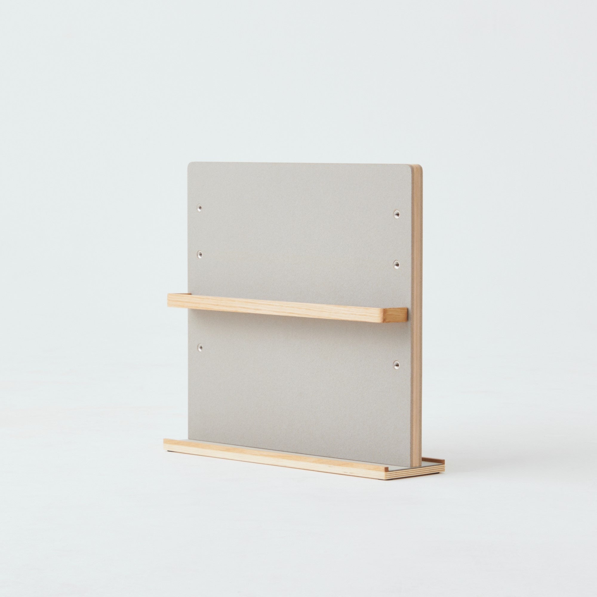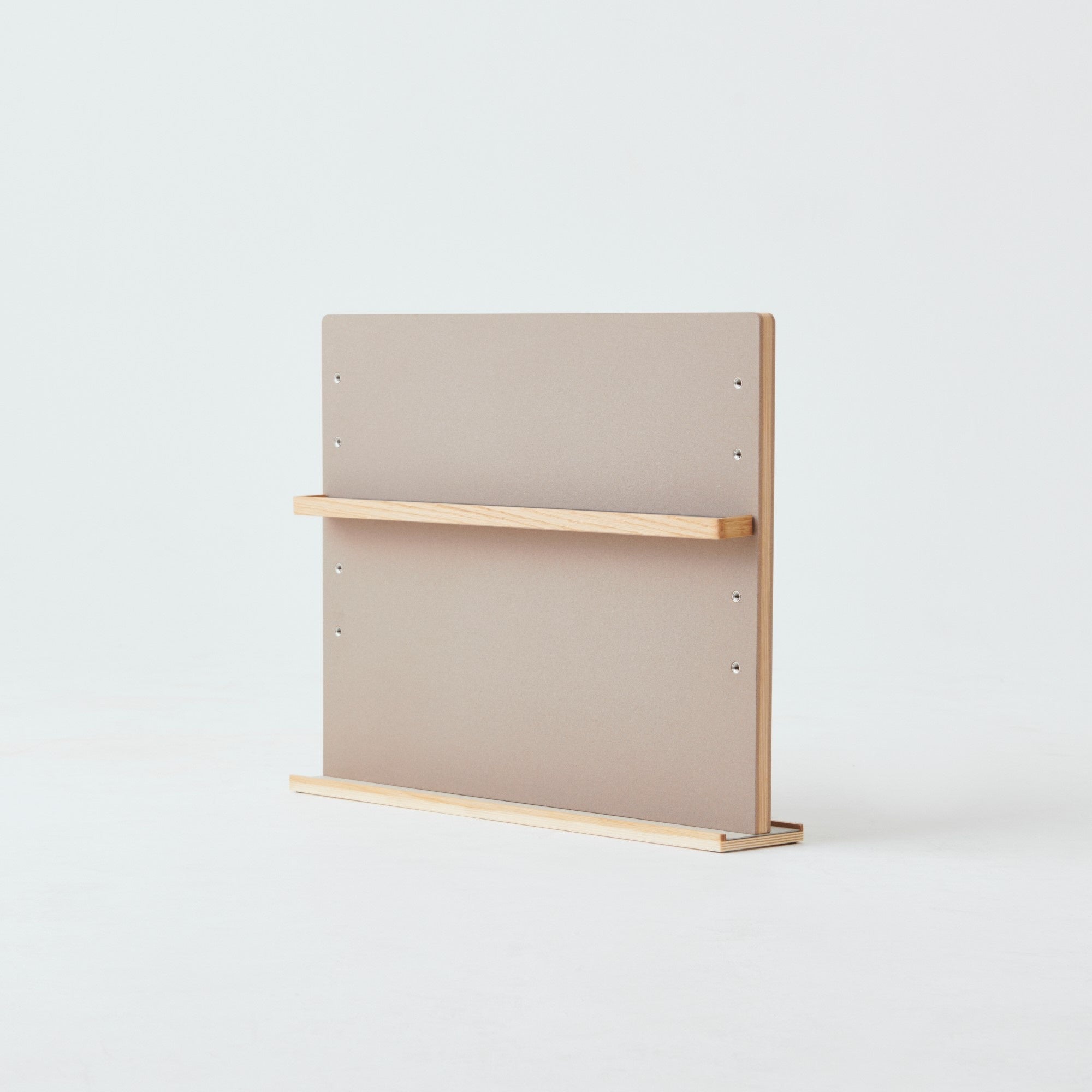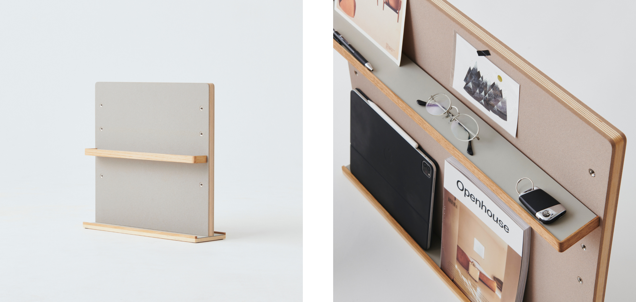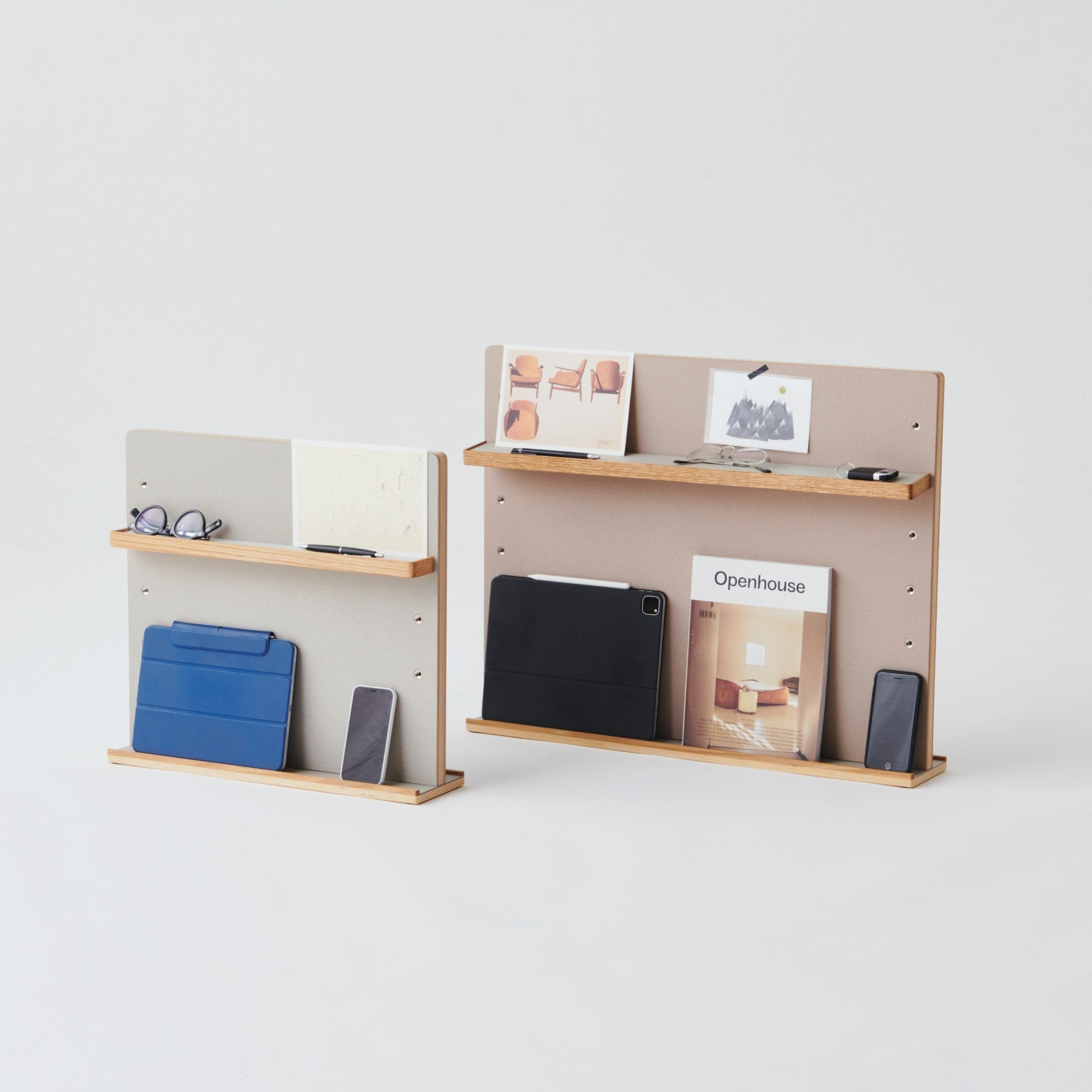 空間を仕切る役割と掲示板としての役割を併せ持つデスクパーテーション。スマートフォンやタブレットを立て掛けたり、イラストや写真などをピンを刺して止めたり、多用途に使うことができます。雑多になりがちなデスク上の小物をまとめ、タスクに集中できる環境を生み出します。