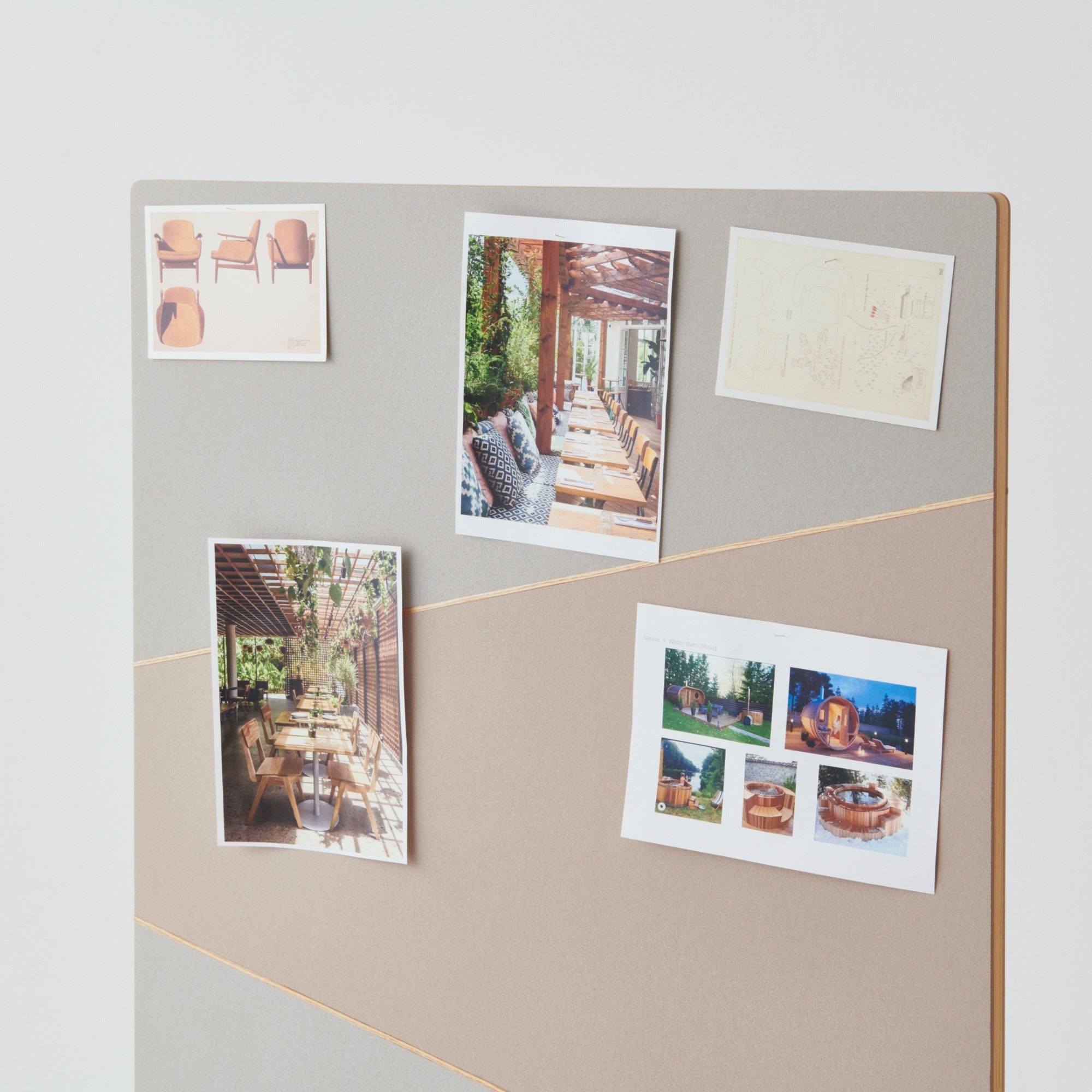 天然リノリウムは亜麻仁油を主原料とした天然素材で構成された仕上げ材です。ブルテンボードは掲示板用の天然リノリウムですが、簡単に切れて好きな形を作ることができるため、壁や家具の面材・サインといった方面にも活用できます。人々が出会いコミュニケーションをする場に最適な、アイディア溢れるインスピレーションの手助けとなる材料です。