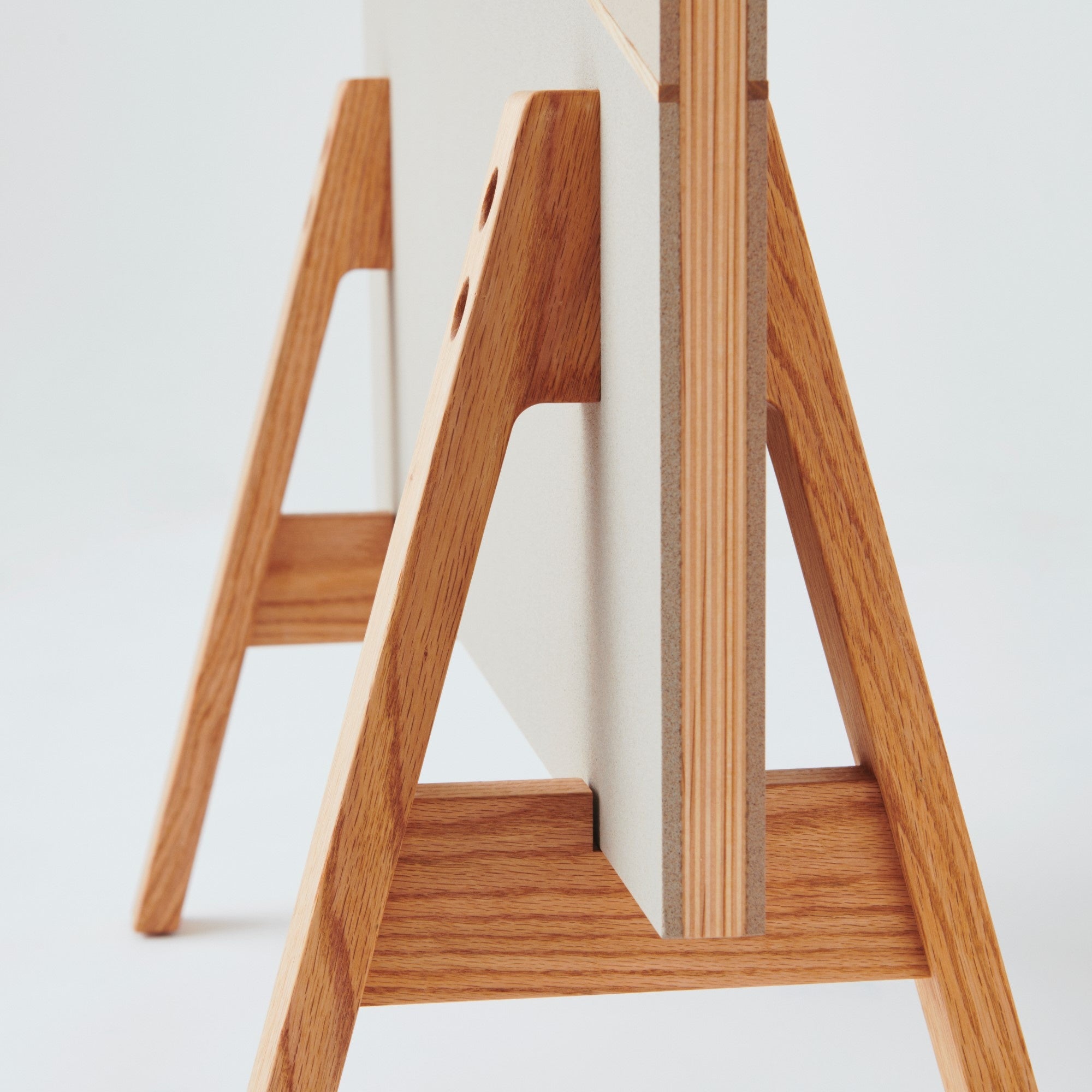 全面にブルテンボードを施した自立式パーテーション。木脚は国産のナラ材を使い、軽快さと共に温かみを感じるデザインとなっています。掲示板としても使えるため、アイディアを共有する場のシンボルとして活躍します。