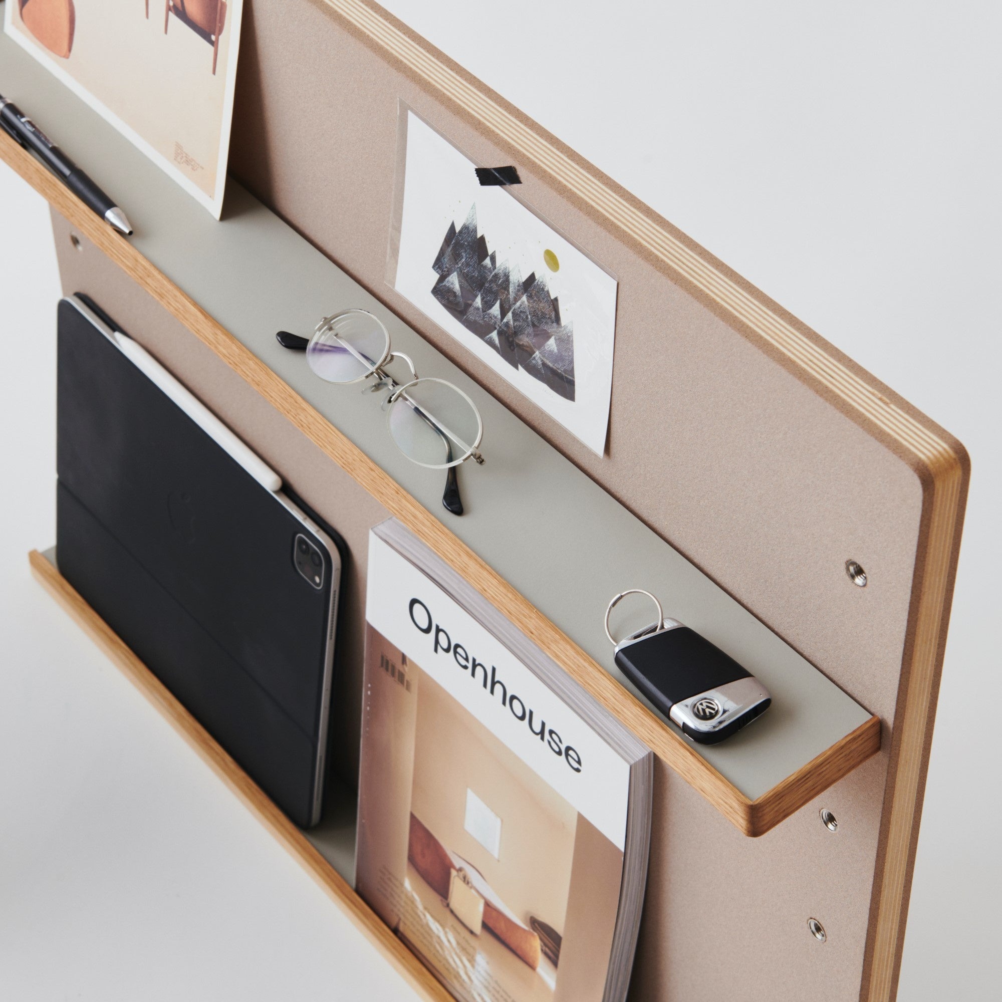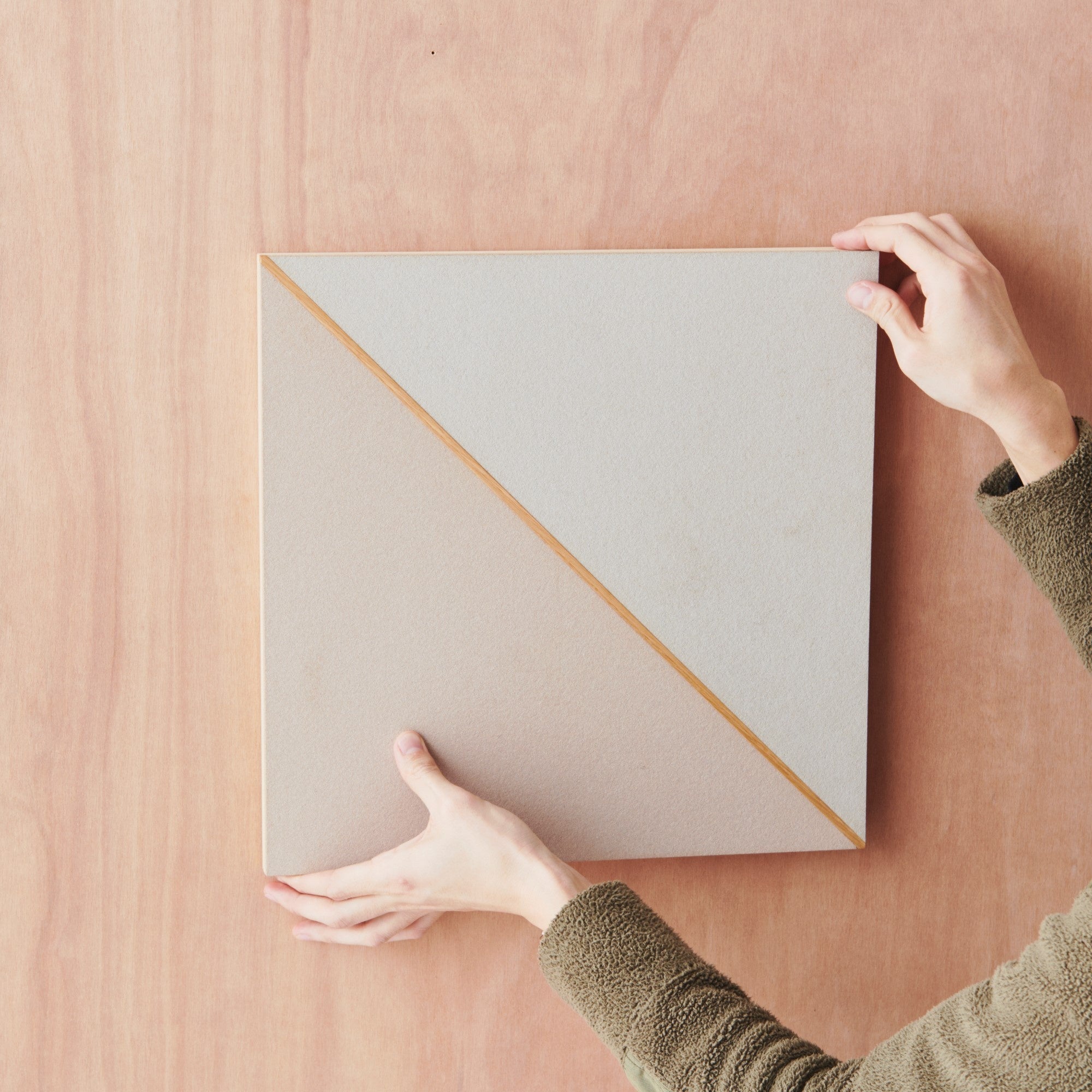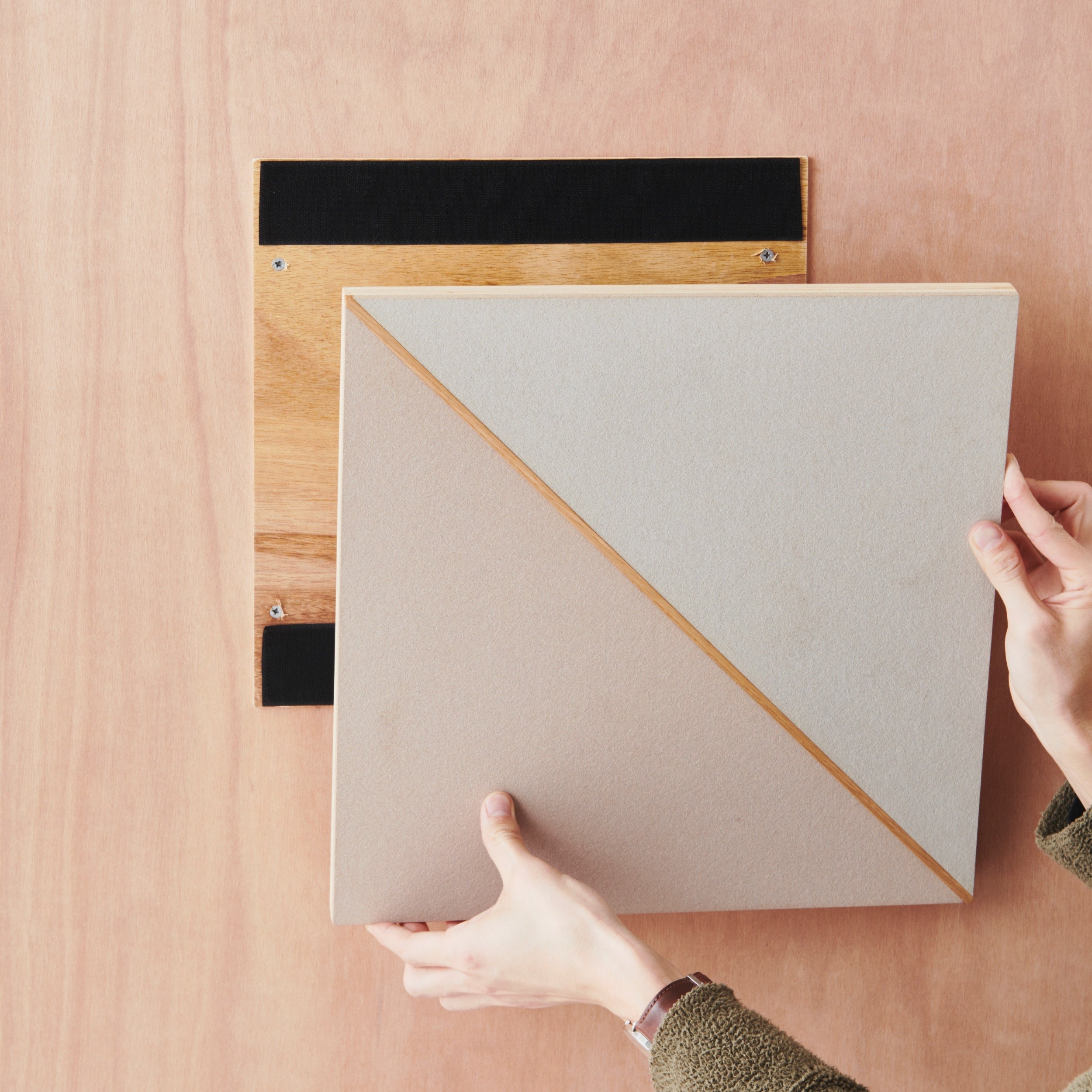 空間にアクセントを生み出す壁面用パネル。ベーシックなスクエアの形状の中にナラ無垢材を入れることで、組み合わせた際に美しいジョイントラインが出来上がります。掲示板としてだけでなく、アートパネルとしても楽しむことができるプロダクトです。