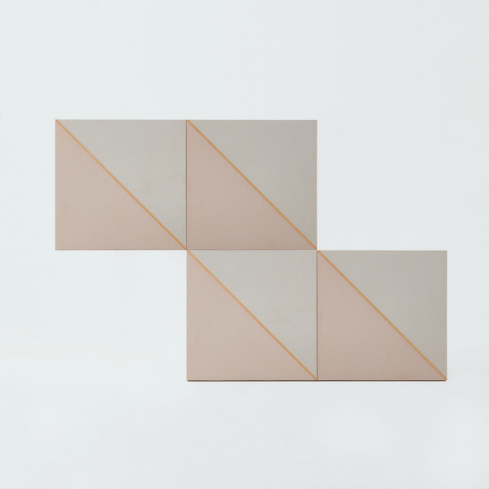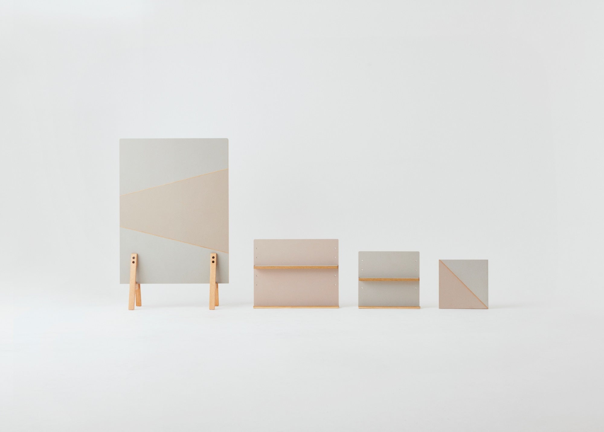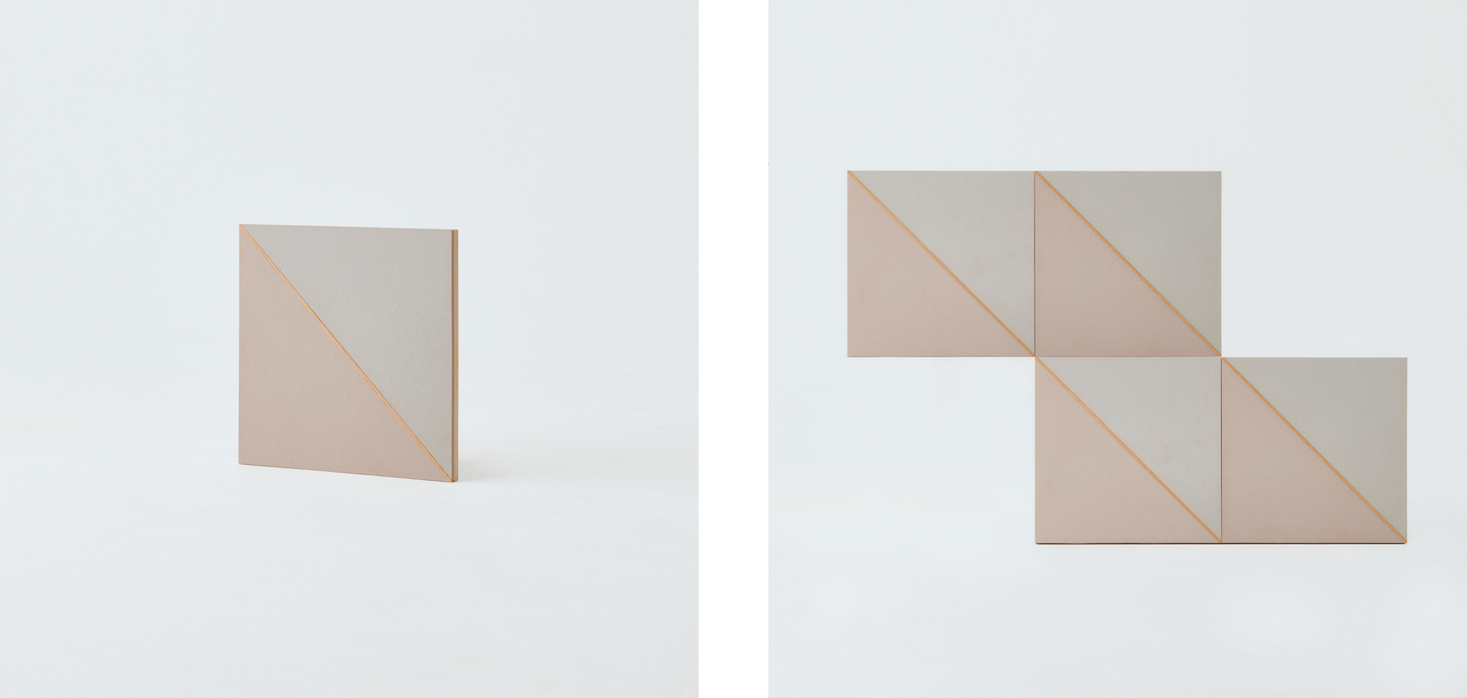 空間に存在する「人」を中心に考え、気持ちが安らぎクリエイティブな発想が生まれるきっかけとなるように、自然界に存在するベージュやブラウン系統のアースカラーを取り入れました。間に入れた無垢材はプロダクトを組み合わせることで連結し、コンセプトでもある「繋がり」を表現しています。シンプルなデザインですが組み合わせによって幾何学でユニークな図形を演出でき、創造性を掻き立てます。