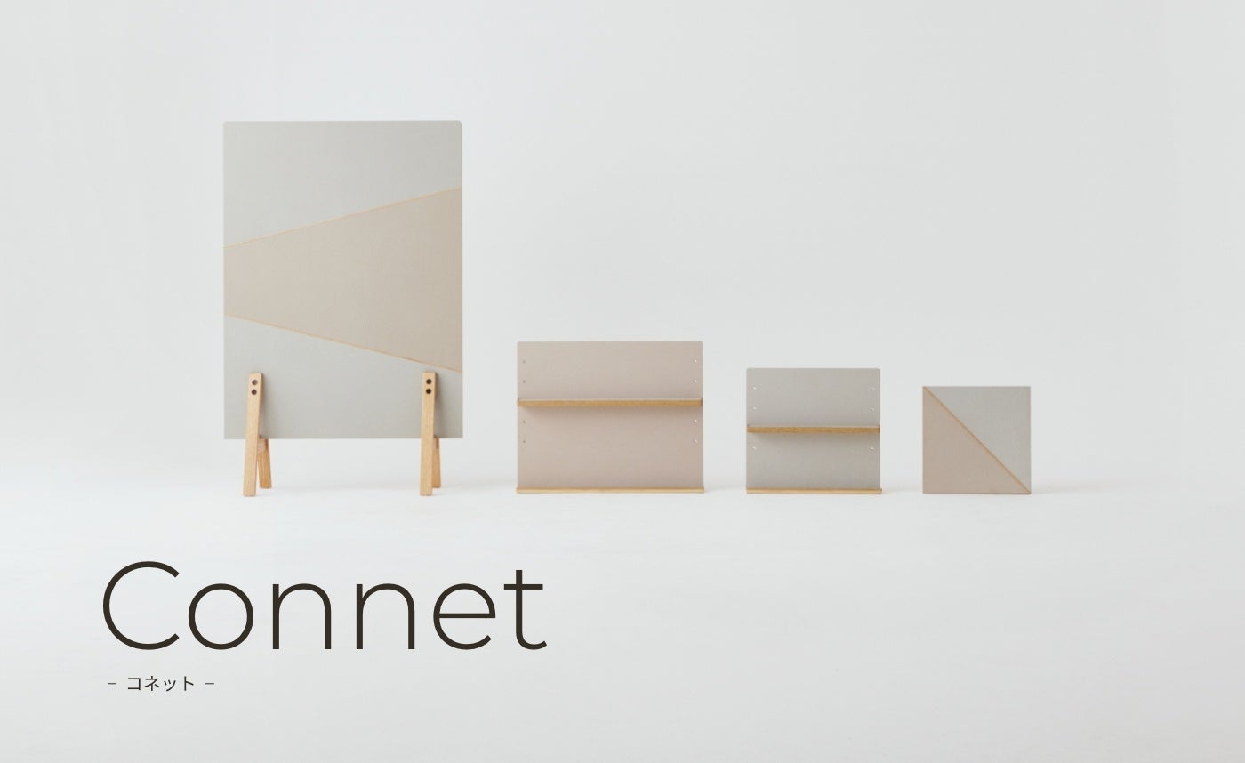 Connet(コネット)は「人、空間、社会をプロダクトで繋ぐ」というコンセプトに基づいて開発されました。メインマテリアルとして天然リノリウム”bulletin board(ブルテンボード)”を採用した新しいオフィス家具です。昨今のオフィス空間では、社員が自発性を持ち、作業内容や気分に合わせて最適な働き方を選べる環境づくりが主流になりつつあります。Connetは自然界の素材を再構築した材料を使用することで、人々が心身ともにリラックスでき、柔軟なアイディアが生まれる「オフィスと自然を繋ぐ場所」を提案します。さらにこの持続可能なマテリアルを使うことで現代社会の課題である環境問題とも向き合います。