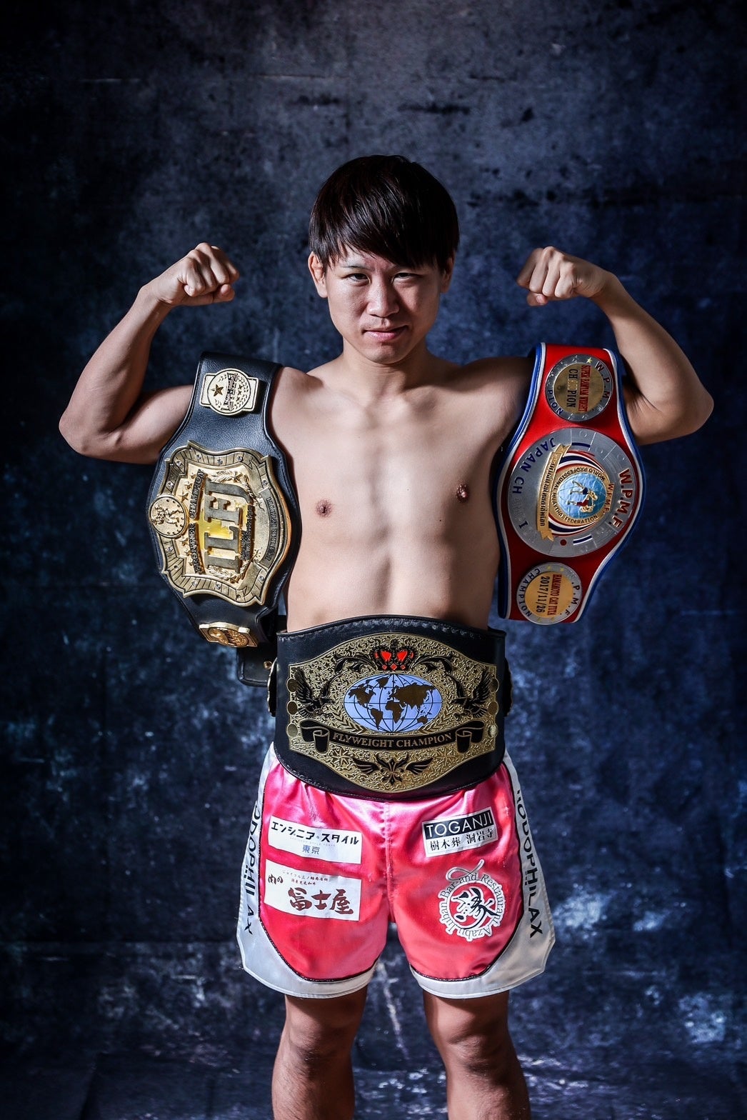 戦歴 2017.6.16 ILFJ認定ラウェイ世界王者(ラウェイ) 2017.11.26 WPMF日本スーパーバンタム級王者(ムエタイ) 2017.12.31 RIZINで那須川天心と試合 2020.8.30 MMAデビュー 2022.11.7 Fighting NEXUS フライ級王者(MMA) |