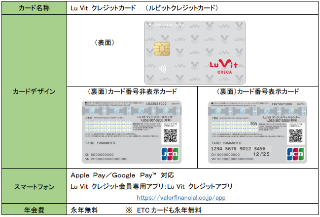 ▶ 「Lu Vit クレジットカード」の詳細・申し込みはこちら(https://valorfinancial.co.jp/card/)