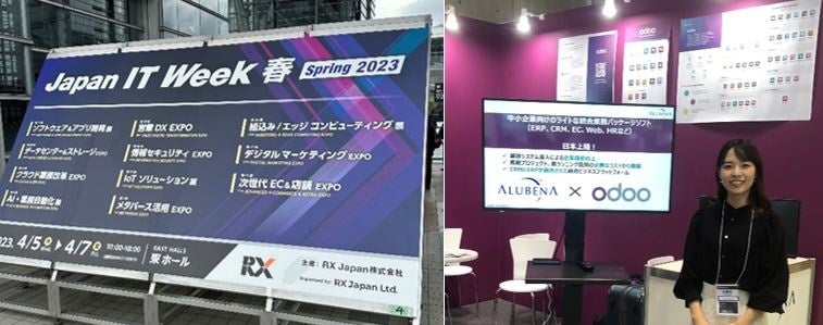 ITコンサルティング企業の株式会社アルベナ(本社:東京都千代田区、代表取締役CEO:相馬智之)は、2023年4月5日(水)~7日(金)に東京ビッグサイトで開催された「第32回 Japan IT Week 春」にOdoo HK Limited社(本社:Odoo S.A.社、ベルギー、最高責任者:Fabien Pinckaers)と共同でクラウド型統合業務パッケージ「Odoo」の出展を行い、多くのお客様にブースへ訪れて頂きました。