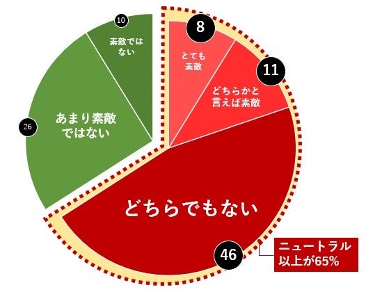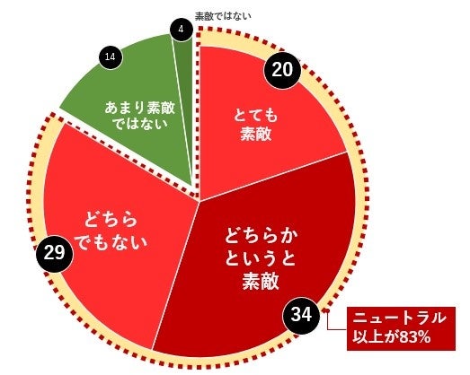 自分自身のグレイヘアは77%が否定的な感情を抱いている一方で、ご友人に関しては65%が、タレントに関しては83%がニュートラル以上の感情(好意的+どちらでもない)であることがわかりました。