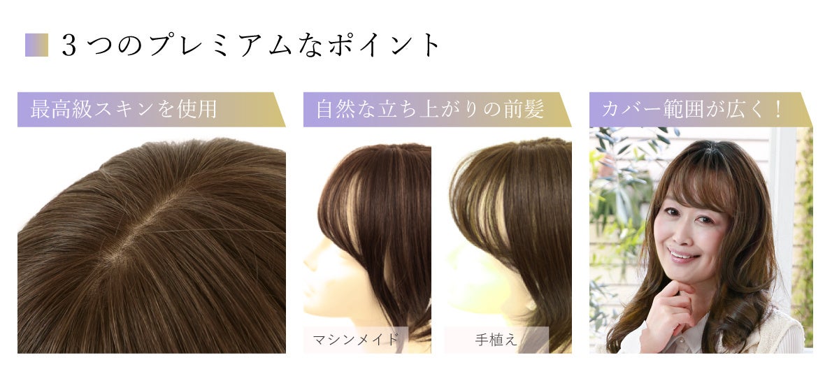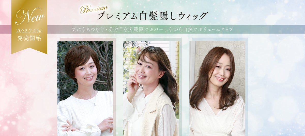 2014年より販売を開始した白髪隠しウィッグが、2022年2月にシリーズ累計販売個数12万6千個を突破いたしました。当初は分け目・つむじをピンポイントに手軽にカバーするだけの商品ラインナップでしたが、現在は生え際を手植えにしてつむじがより自然になった「プレミアム白髪隠しウィッグ」、安価にお試しいただける機械植えタイプ、人毛100%のタイプ、形もさらにストレートタイプ、カールタイプ、広範囲タイプ、ロングタイプなど、ご要望やご予算に応じて多種多様なウィッグをリリースしてまいりました。