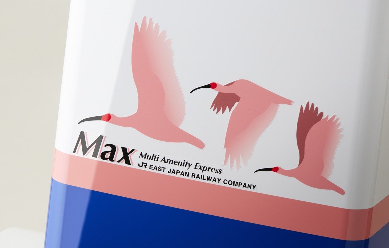 2階建て新幹線の車体とイメージが重なる白くすらりとした商品ボディに朱鷺色と青色の帯が絶妙なコントラストを描き出し、そこに舞う3羽の「とき」は特殊なシールを手作業で丁寧に貼り付け「Maxとき」の車体を彷彿とさせる色味を再現しています。タッチパネルのライトは、車両のカラーリングに合わせてほんのり朱鷺色としています。