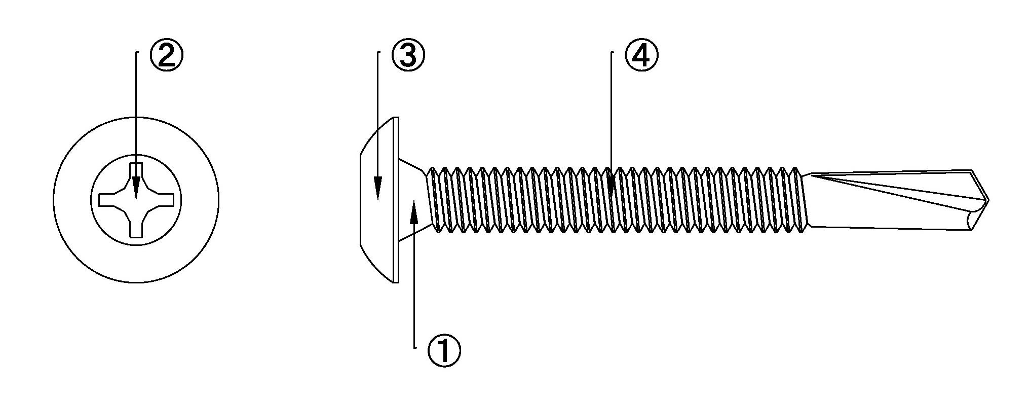 ・ 十字穴(No.3)採用により、ビットとリセスの勘合性が高く、優れた施工性を有します。