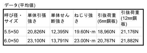 サイズ : 5.5×50mm 6.0×50mm(頭径:14mm 刃先:15mm 働き長さ:27.5mm)