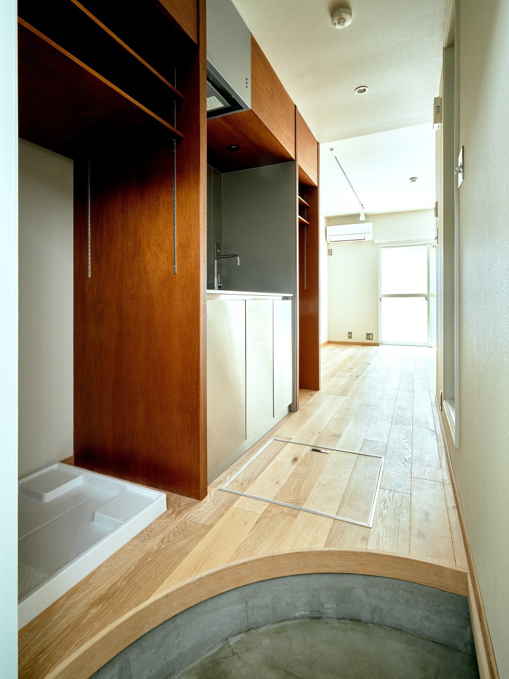 アパート外観はグレーを基調とした端正な佇まいで、街並みにも調和しています。室内は上質な木材を基調としたデザインで、心地よい温もりを演出。玄関はアーチが優美なデザインを、床には耐久性に優れたレストラン仕様のフローリングを採用しています。キッチンはコンパクトながらオールステンレス製にするなど、細部にまでこだわったデザインが、洗練された住空間を実現しました。