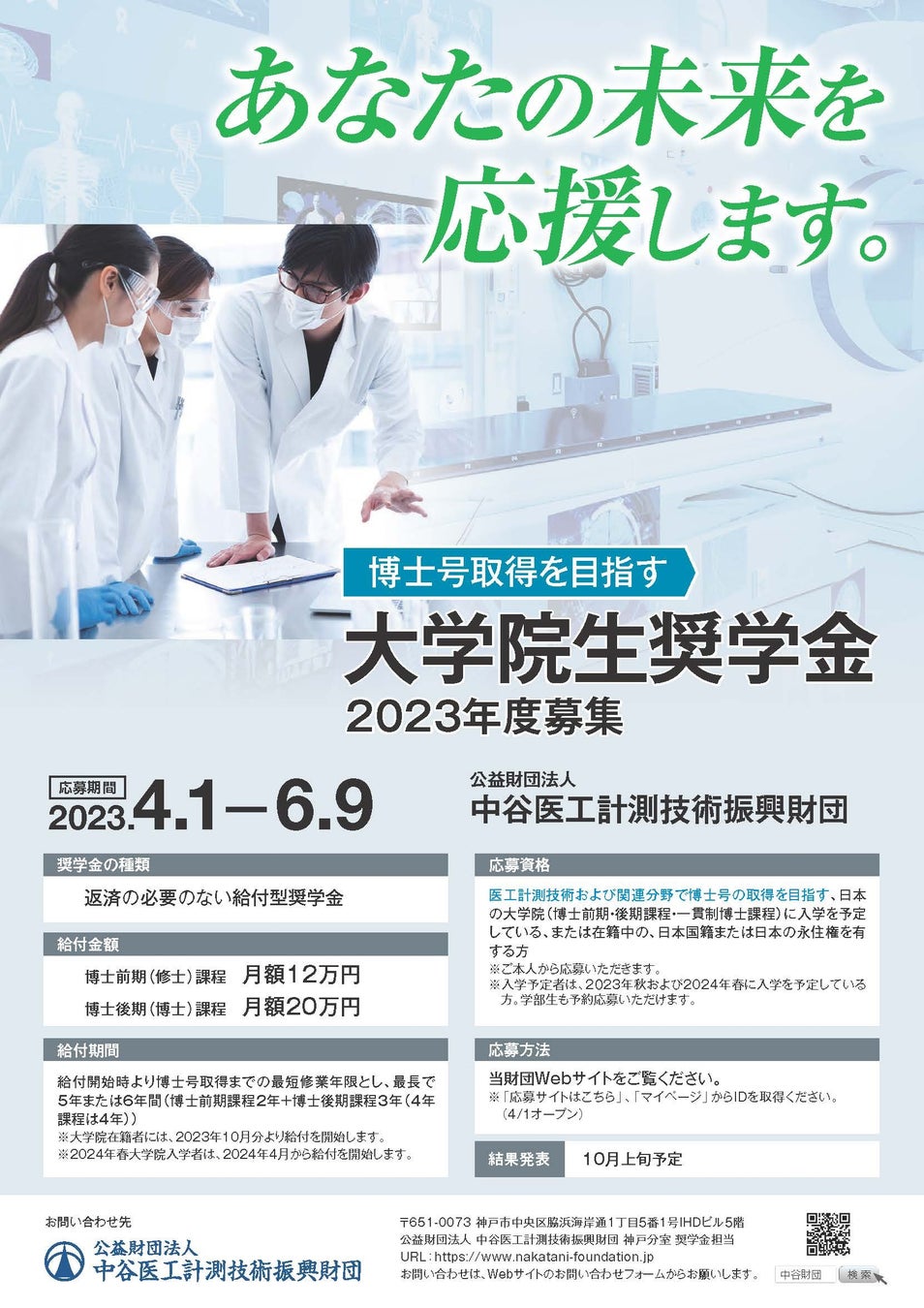 ・募集要項 https://www.nakatani-foundation.jp/wp-content/uploads/scholarship_2023.pdf