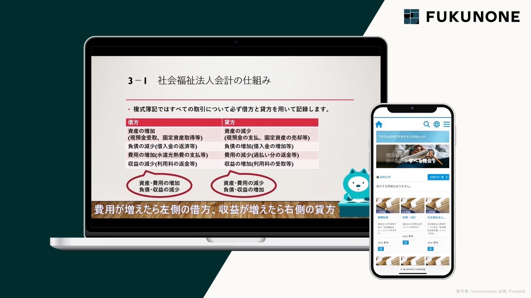 事業内容 :- 福祉経営eラーニング「ワクウェルネスマネジメントカレッジ」(https://wwmc.fukunone.org/)の運営