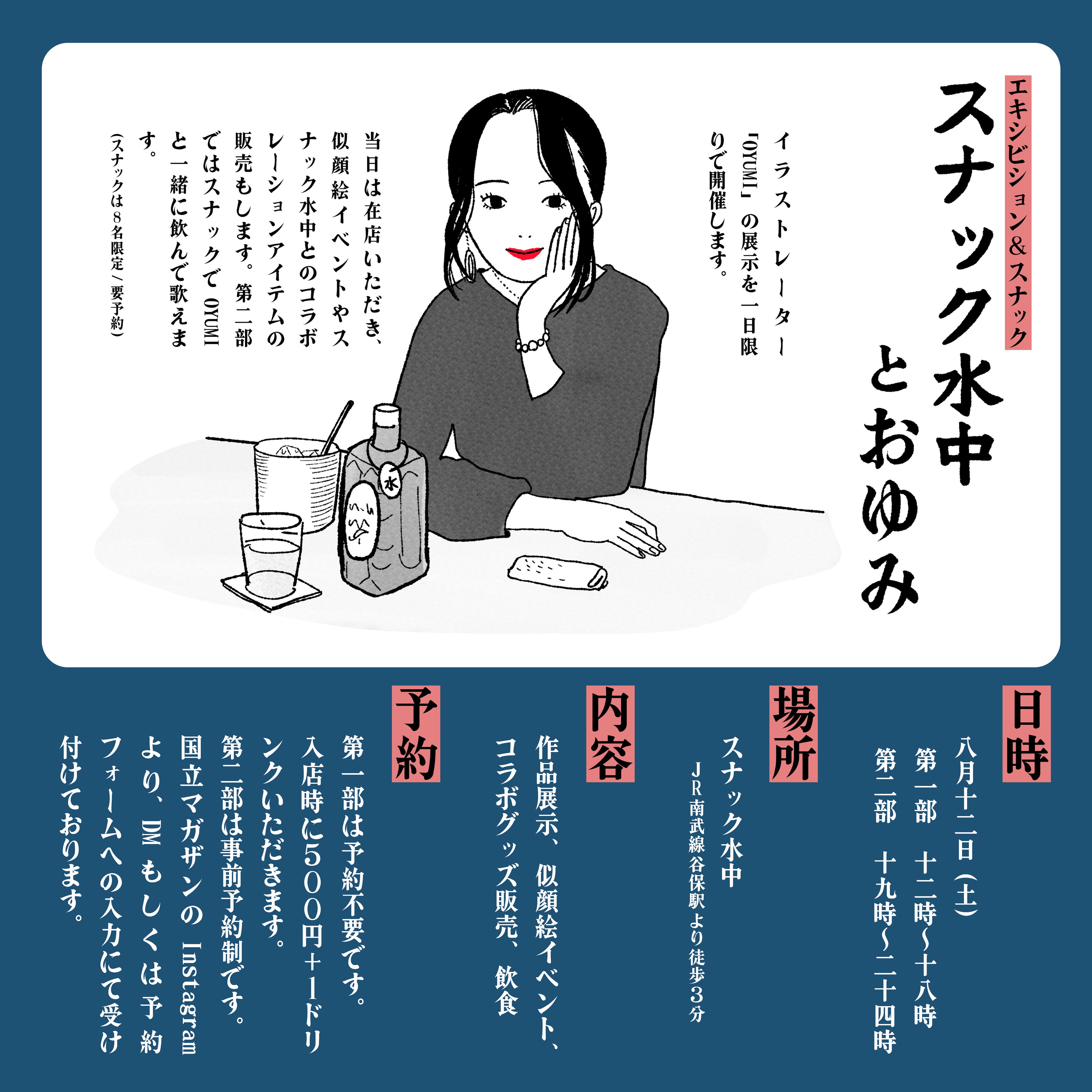 ・開催場所:スナック水中 (東京都国立市富士見台1-17-12 エスアンドエスビル1階)