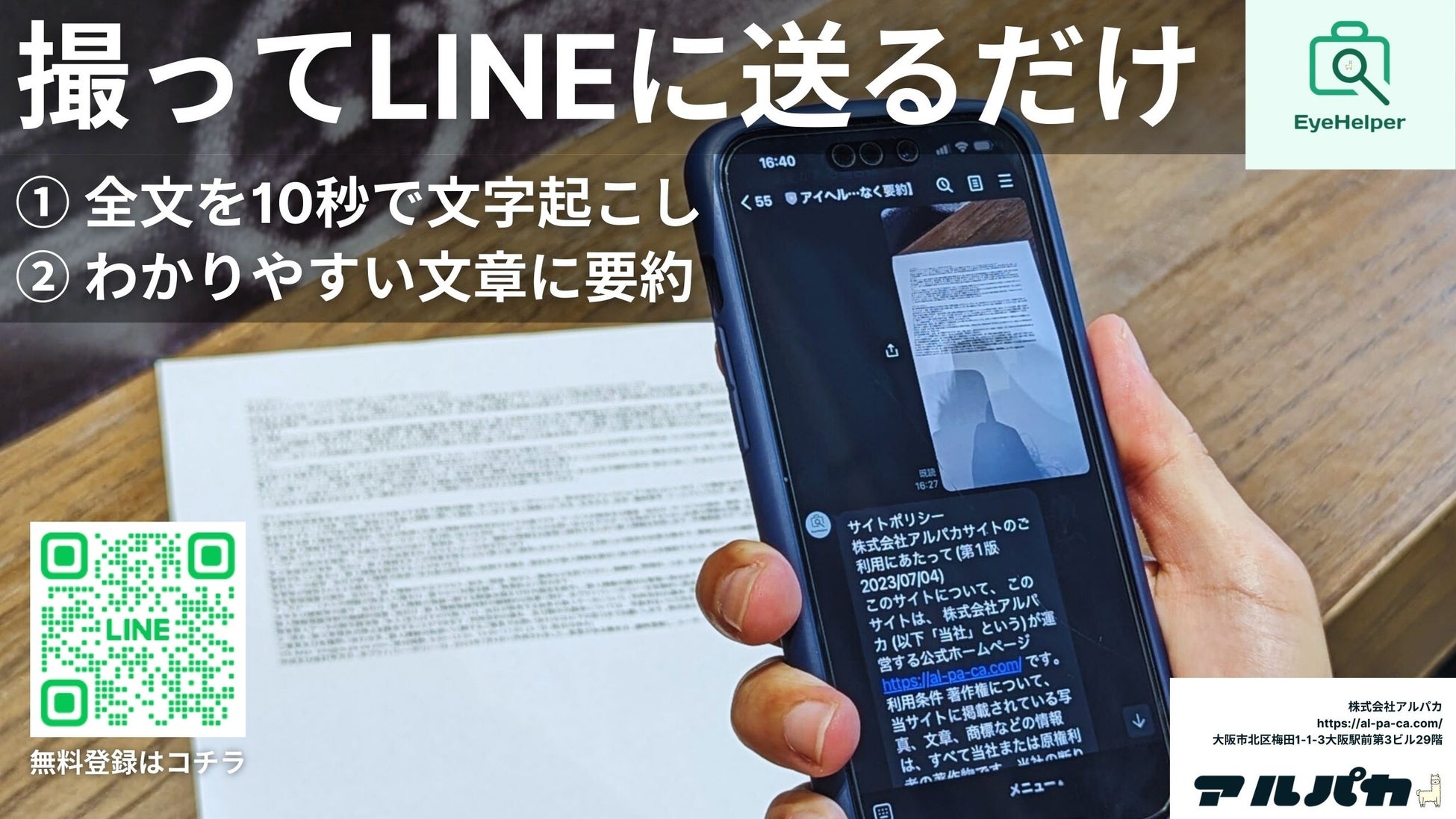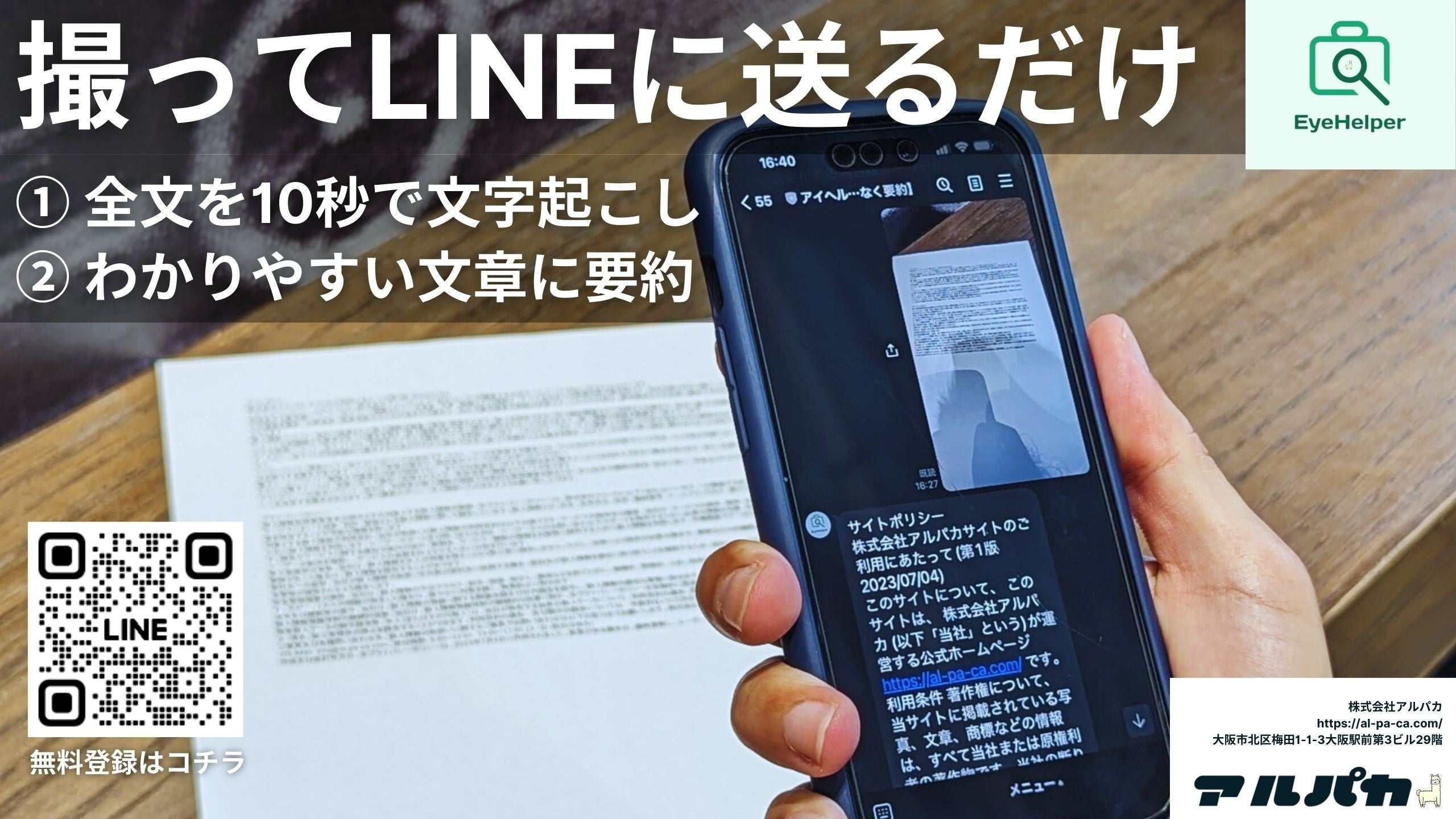 「小さい文字が読めない、わかりづらい」からサヨナラ。写真から全文を10秒で文字起こし、わかりやすく要約する「アイヘルパー」を2023年8月1日リリース