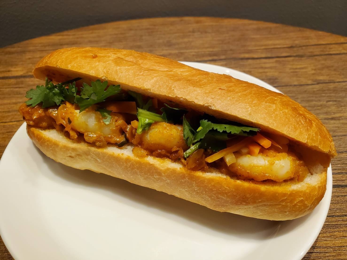 そこにプリっとした海老を加えることで、口の中でエビ!エビ!な旨味が広がるバインミーです。