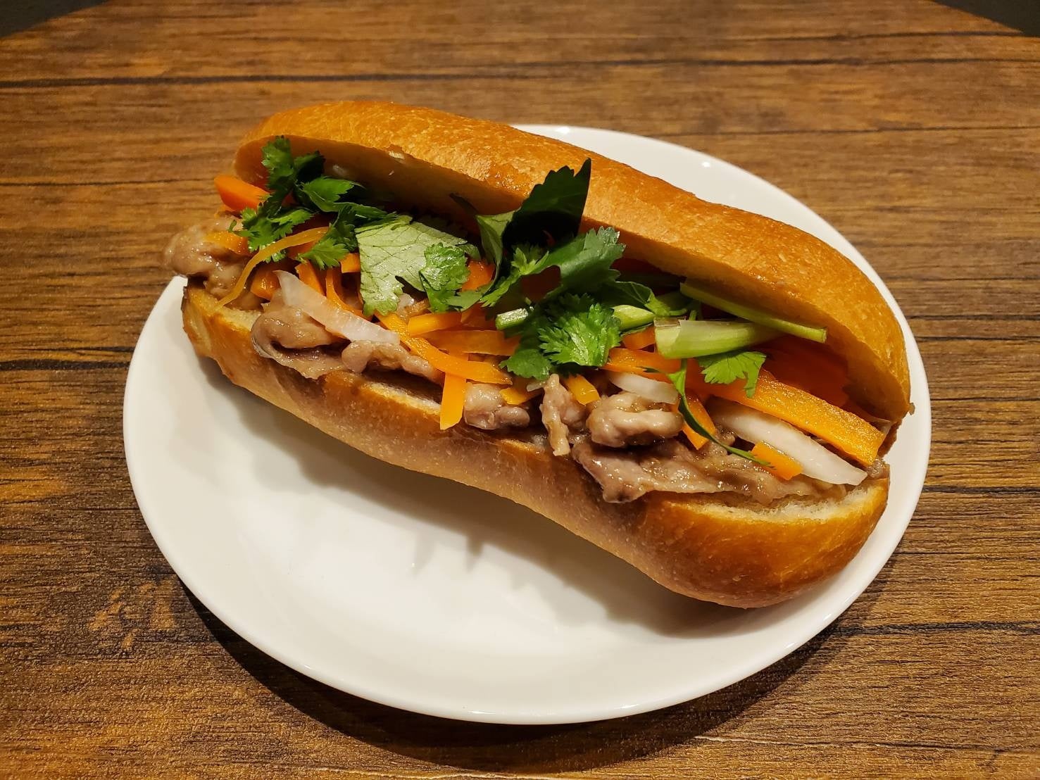 自家製スイートチリソースと無添加パンを使ったベトナム風の生姜焼きバインミー。