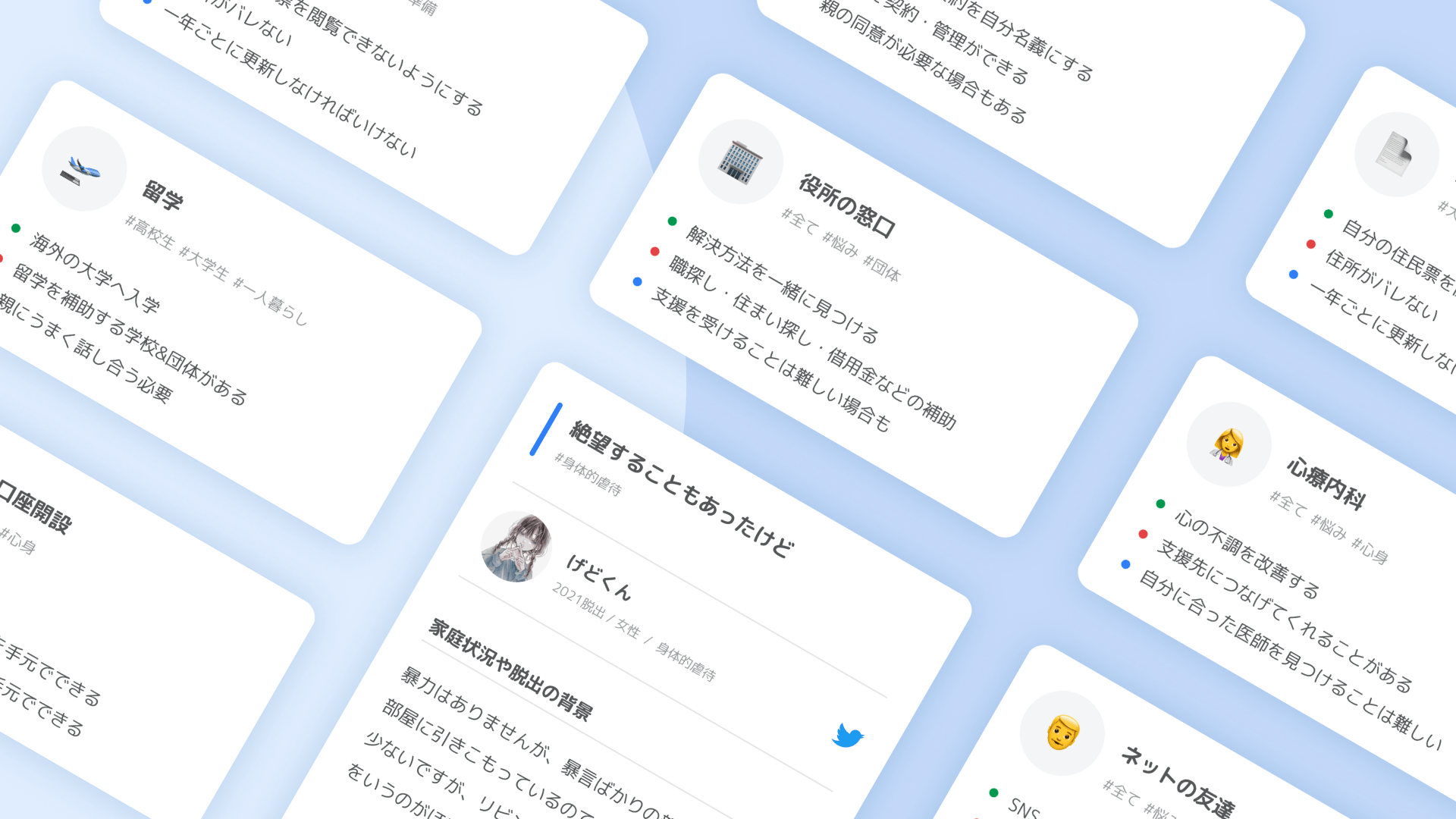 サービスをより安全かつ安定的に運営するために、新たにソーシャルワーカー1名、デザイナー2名、ライター4名、動画編集者2名を増員しました。すべてのスタッフが、このような家庭環境問題の当事者、または関心の高いメンバーで構成されています。