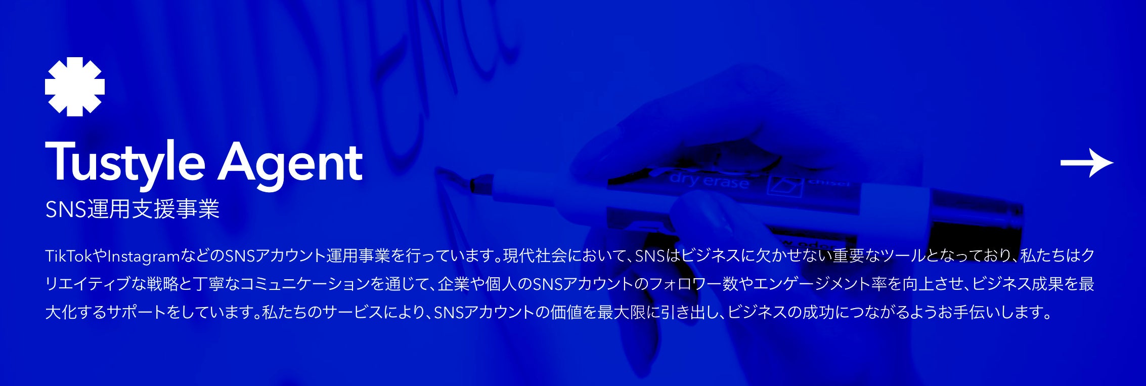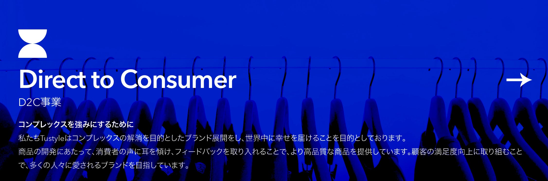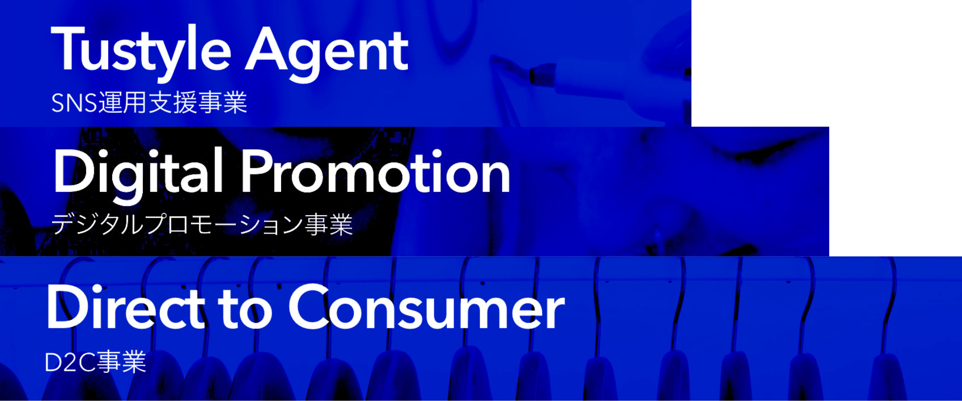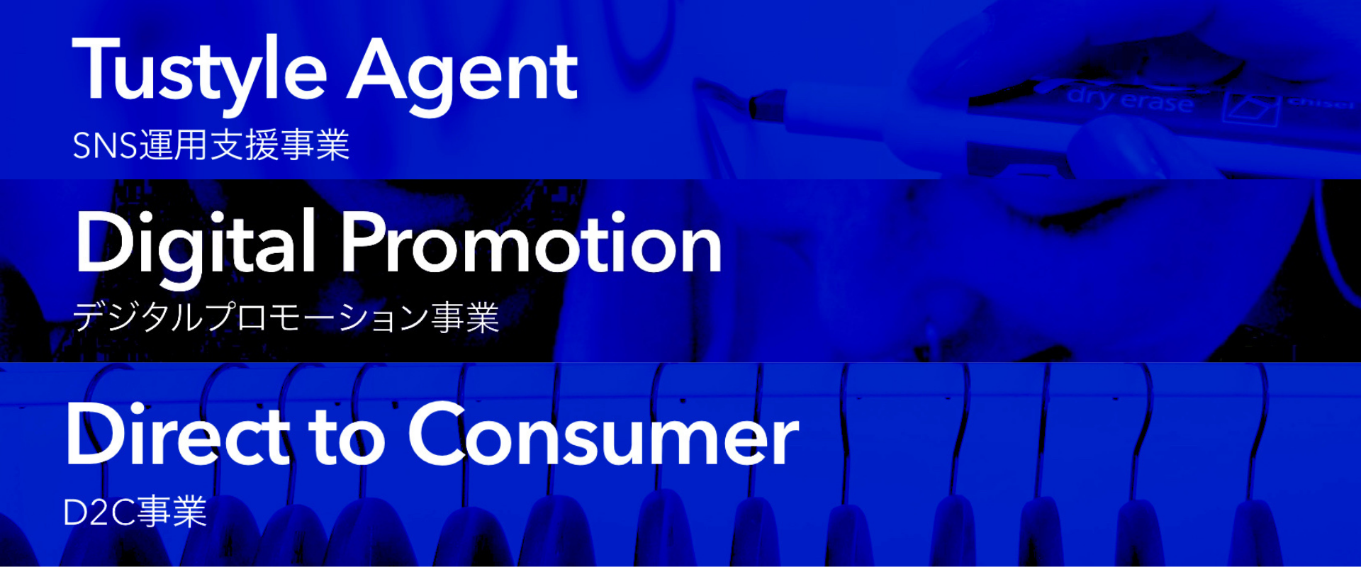 Tustyleは、デジタルプロモーション事業、D2C事業、プロダクション事業を主に展開する会社です。