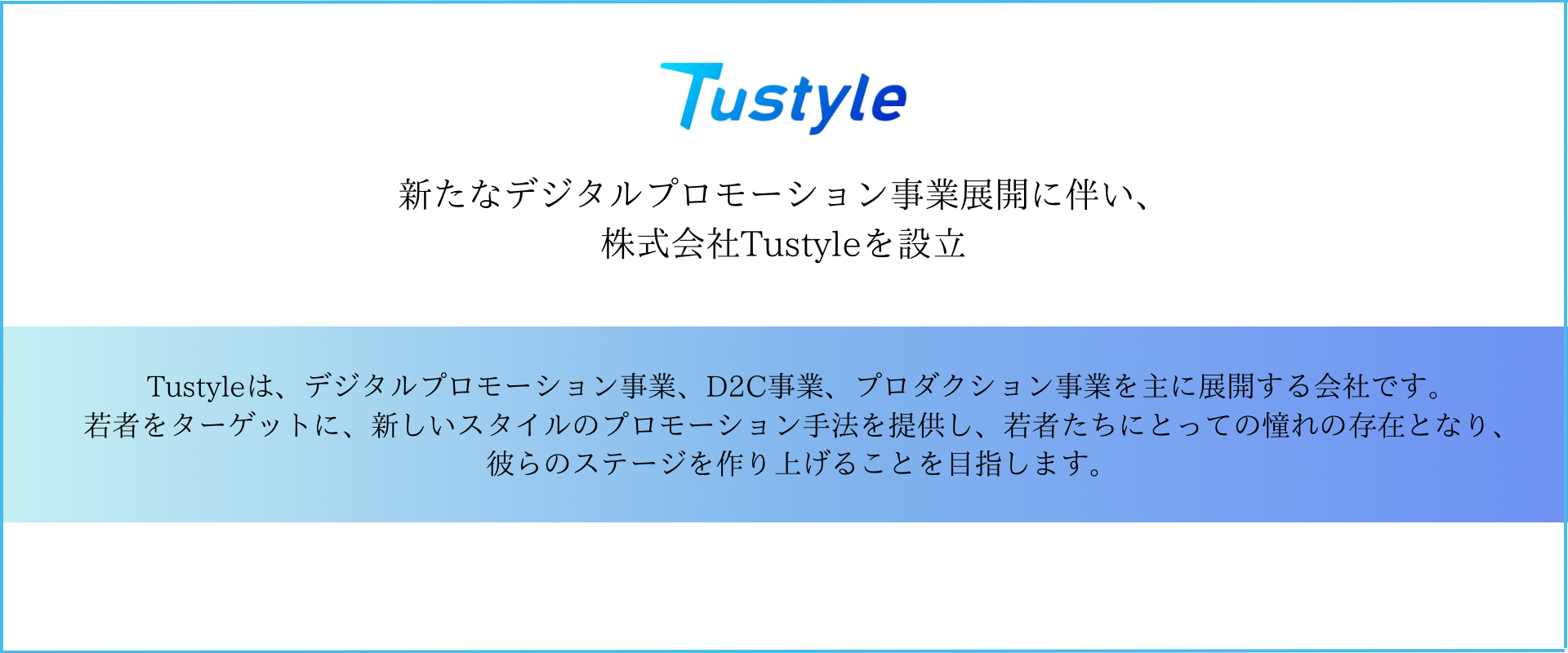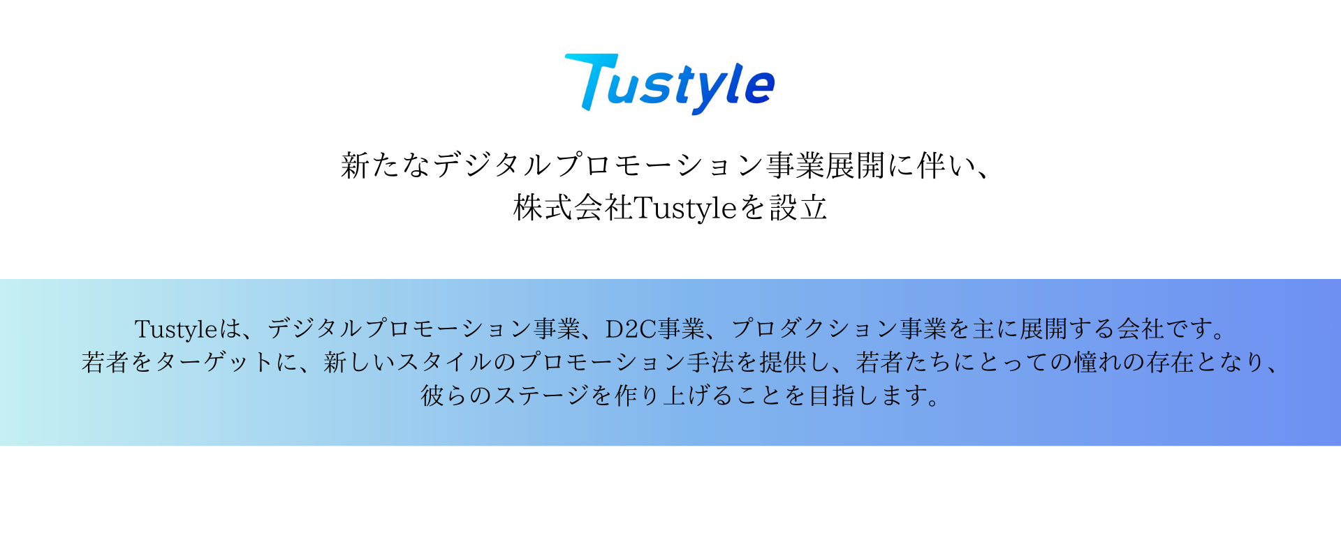 当社は、長年にわたり株式会社UPtoERAを通じて、タレント、インフルエンサー、ライバーのマネジメントを行ってきました。しかし、私たちは彼らの可能性に着目し、彼らをさらに成長させることを目指して、プロモーション、SNS運用、D2C事業を始めました。そして「すべての若者に夢を」与えるためのステージを作りたいと考え、私たちはTustyleを立ち上げることにしました。