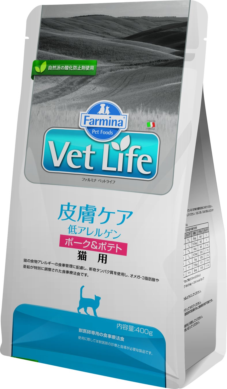 Vet Life 皮膚ケア - 低アレルゲン ポーク&ポテト(猫用) - 400g、2kg