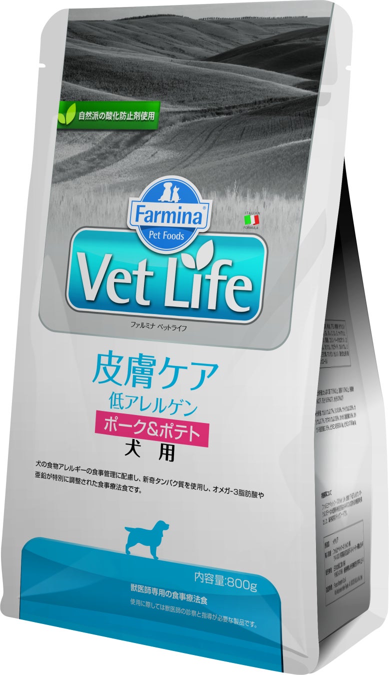Vet Life 皮膚ケア - 低アレルゲン ポーク&ポテト(犬用) - 800g、2kg