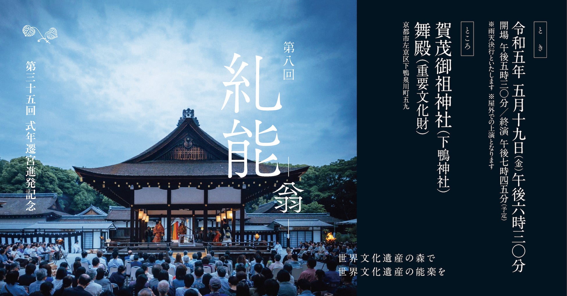 世界文化遺産の賀茂御祖神社(下鴨神社)「糺の森」で世界無形文化遺産の「能楽」を上演『糺能(ただすのう)−翁(おきな)−』 5月19日(金)開催