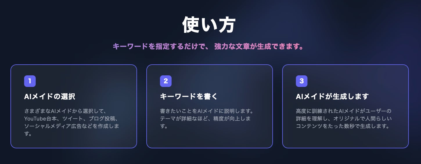 “あなたのため”のオーダーメイドだからこのAI、かゆいところに手が届く!「AIが話題だけど全然良い記事出来ないじゃん!」というあなたへ。台本/記事作成に特化したオーダーメイドAIが記事を作ります。