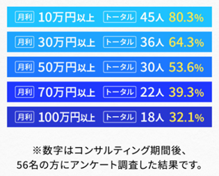 コンサル受講生の多くが副業で作業に取り組まれる方で、時間に限りがあっても、Amazonの完全自動化できる仕組みをうまく活用しながら、このように成果に繋がっております。