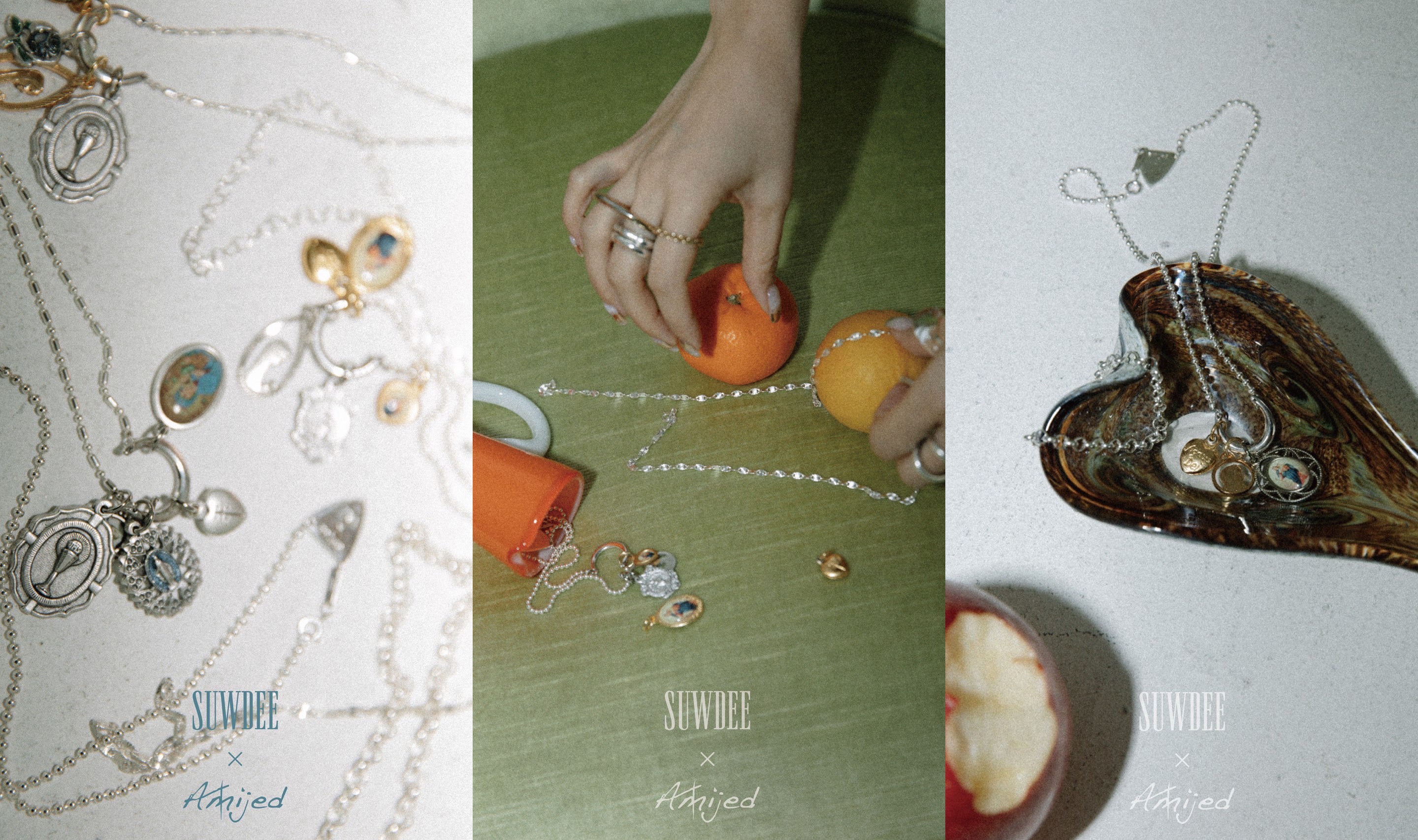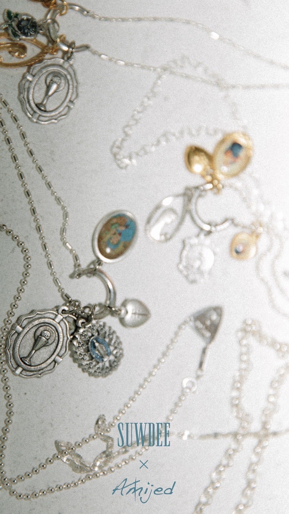 世界各国で出会ったメダイなどの教会ピースを組み合わせて作るAmijedのジュエリーと、"Share the fashion"がコンセプトのSUWDEEの感性を掛け合わせた特別なコラボレーションアイテム。