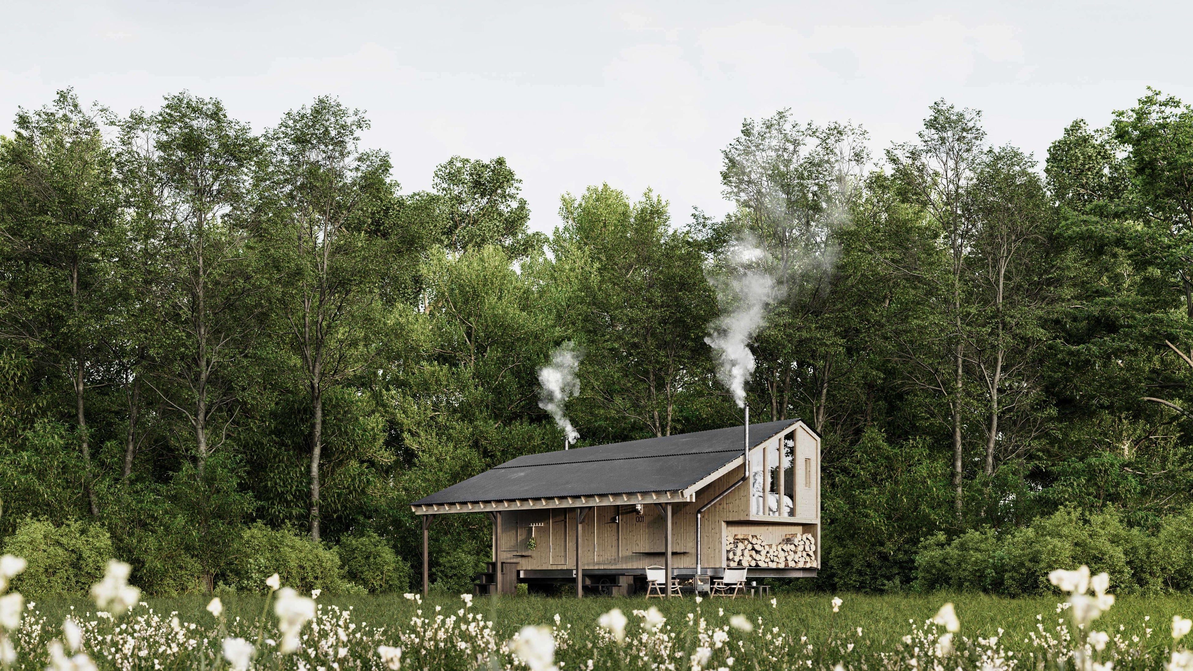 Earthboatは、サウナ付きで、100%国産木材(CLT)で作られたトレーラーハウスです