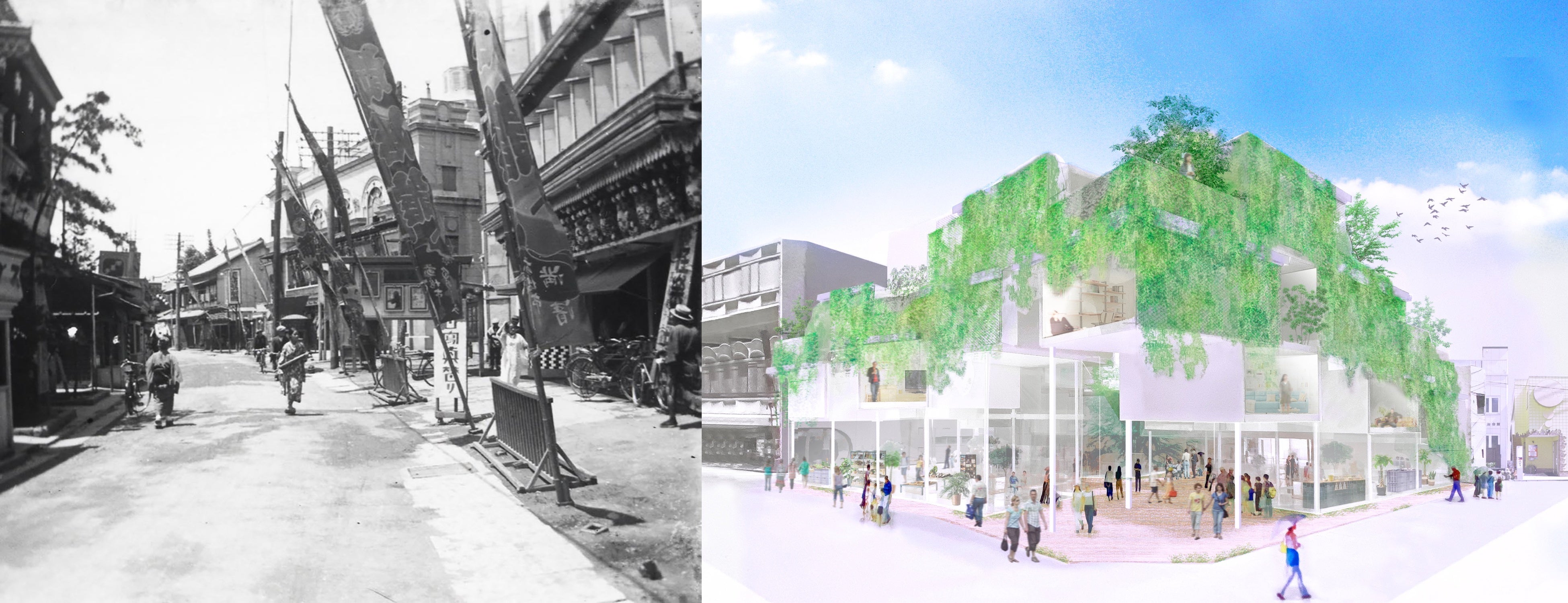 9つの商店街からなる「前橋中心商店街」の中心に位置する、銀座通り二丁目商店街に面する敷地。かつて大正時代から映画館のあった場所であり、地域住民が新しい文化を求めて集まった場所。近年は市が所有者となり地域の広場として開放されてきました。周辺の街並みが繁華街化したことで広場の役目を終え、民間へ売却されたことをきっかけに本計画がスタートし、約5年間に及ぶ計画と工事によりついに完成を迎えます。