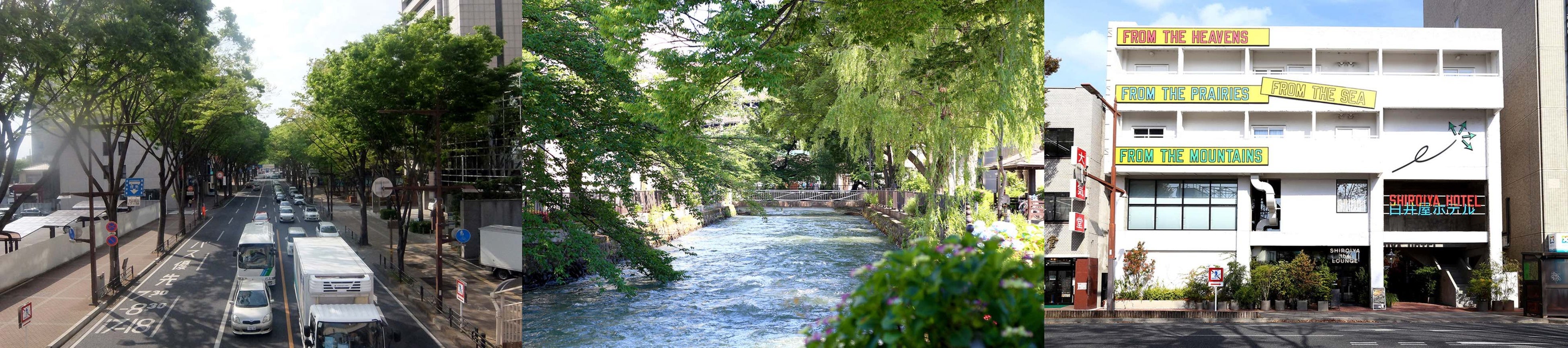 左から/ けやき並木通り / 広瀬川 / 白井屋ホテル
