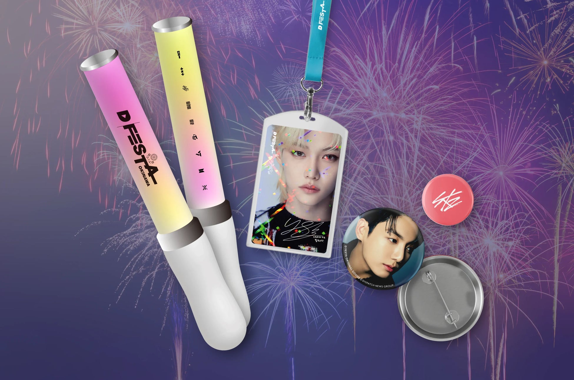 9グループのアイコンとD’FESTA OKINAWAのロゴがプリントされたペンライト