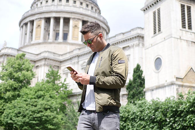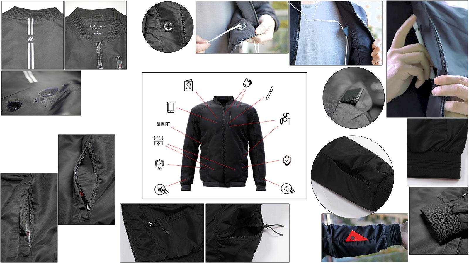NIGHTHAWK Bomber Jacketなら、両袖のポケットに非接触型カードを収納できます。