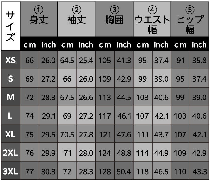 サイズ:XS 〜 3XL