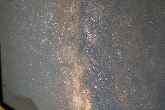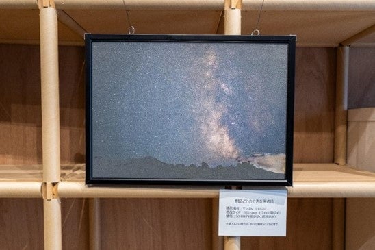 実際に撮影した天の川の写真を特殊な印刷により凹凸をつけて印刷することで星の明るさを高さとして表現しました。星に触る体験ができます。