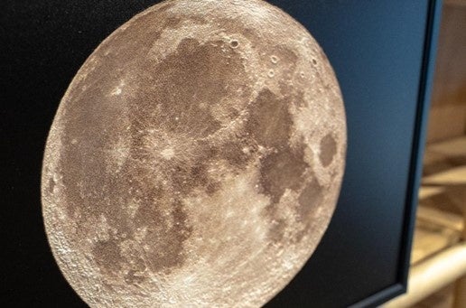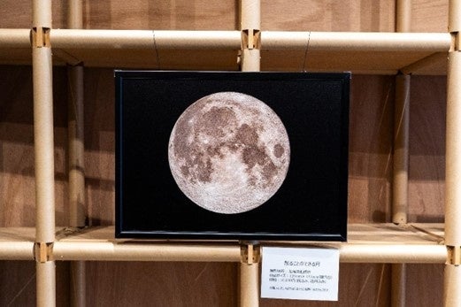 実際に撮影した月の写真を特殊な印刷により凹凸をつけて印刷することでリアルな月の表面を再現しました。実際に月の表面に触っているような体験ができます。