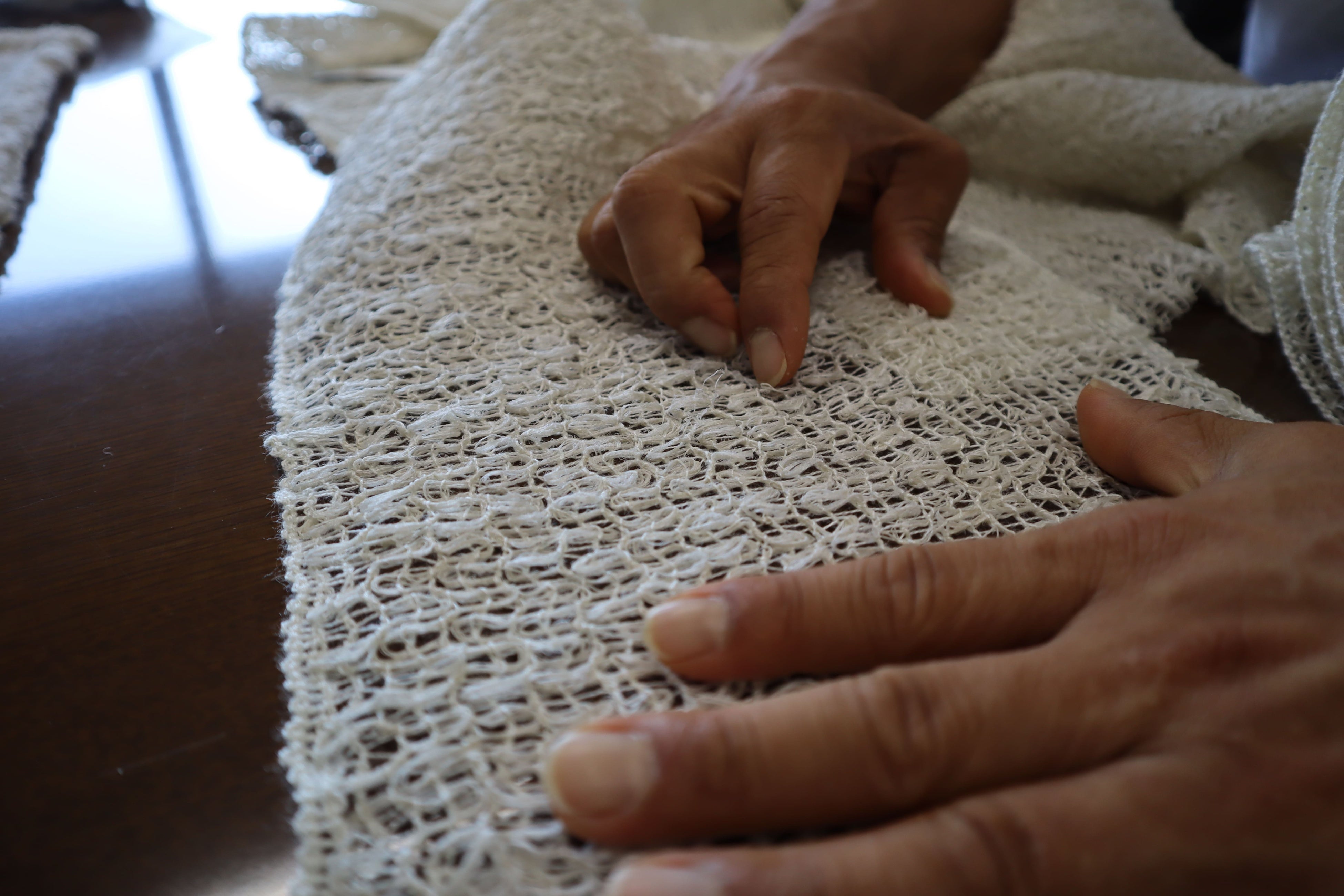 ボディタオル1枚に対し繭を2000個以上も使用し、また、洗い心地にもこだわり編み方の研究も日々続けています。