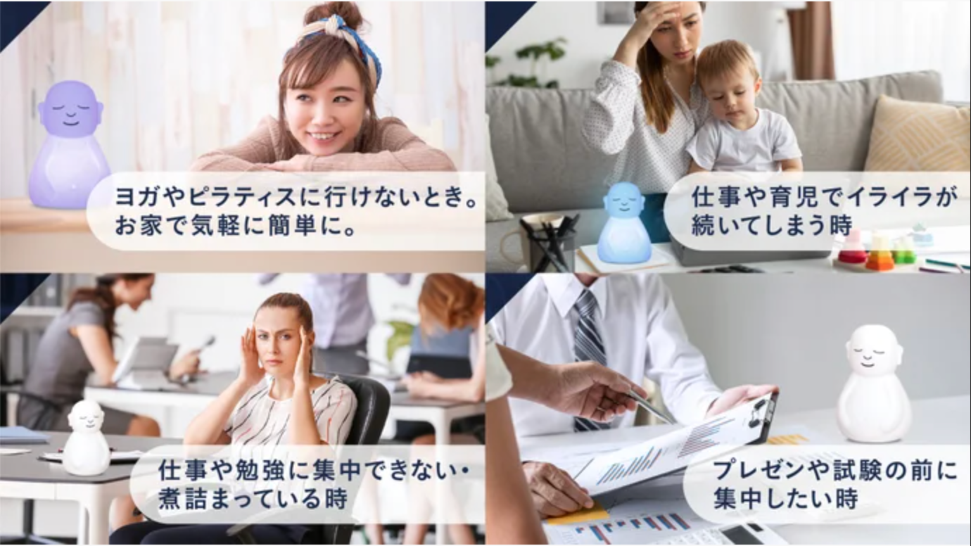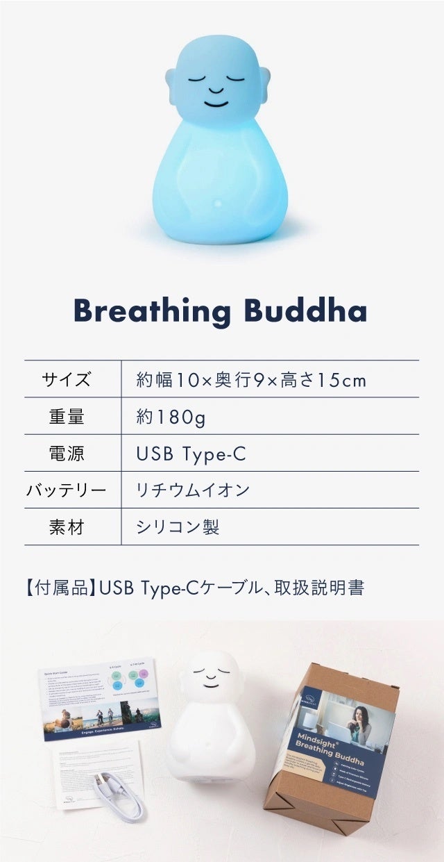 "Breathing Buddha"は、めんどくさがりでも、初心者でも、お子様でもご高齢の方でも、誰でも簡単にマインドフルネスを実践できるようにサポートする、ストレス解消のための新発想のアイテムです。