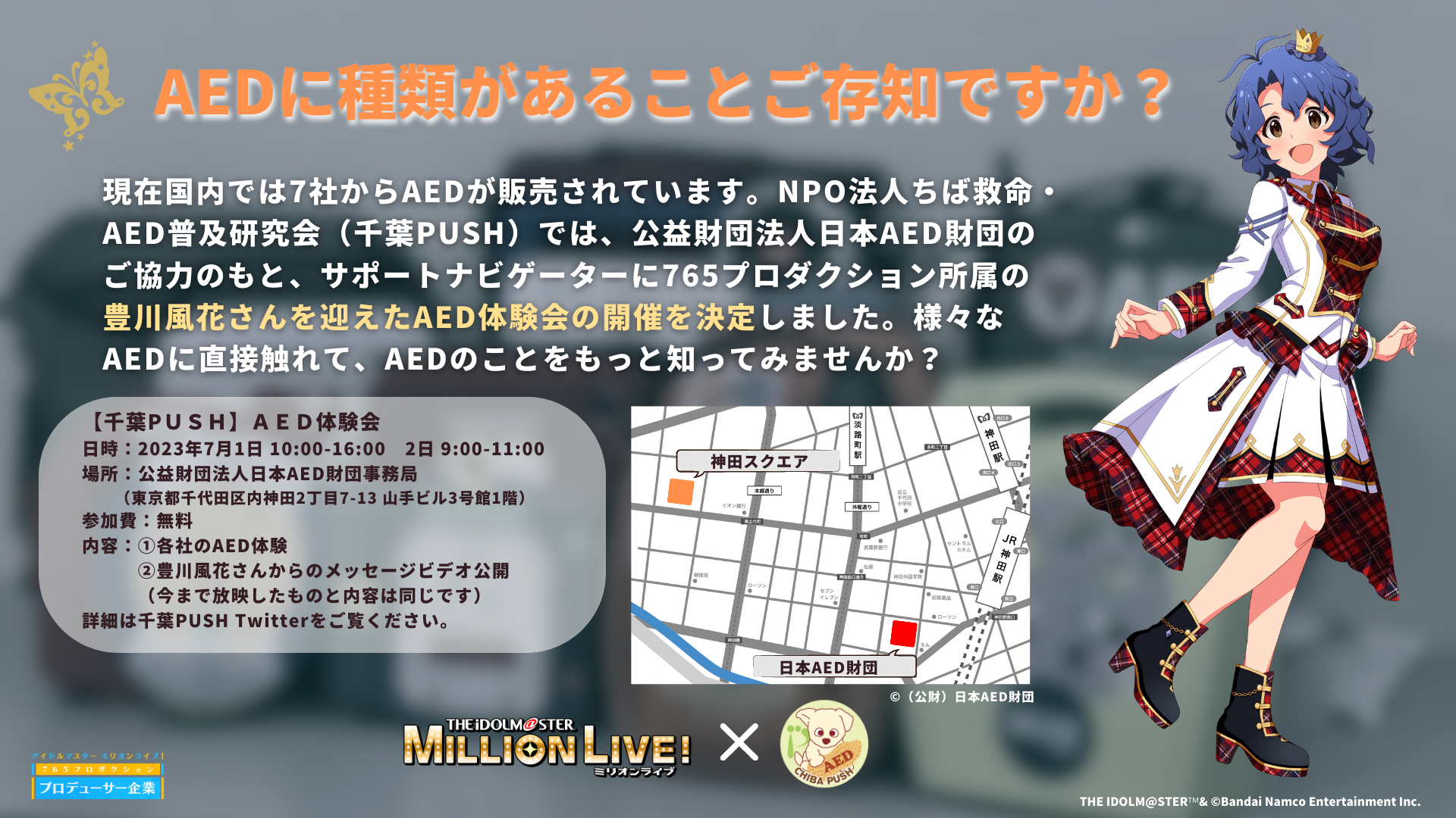 【参加無料】「アイドルマスター ミリオンライブ! × 千葉PUSH AED体験会」開催決定!