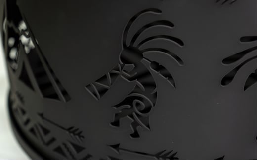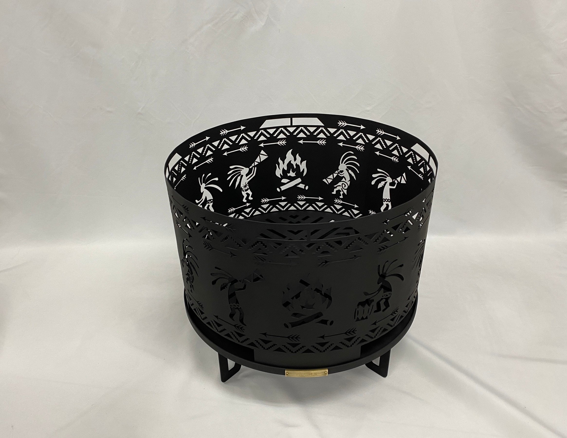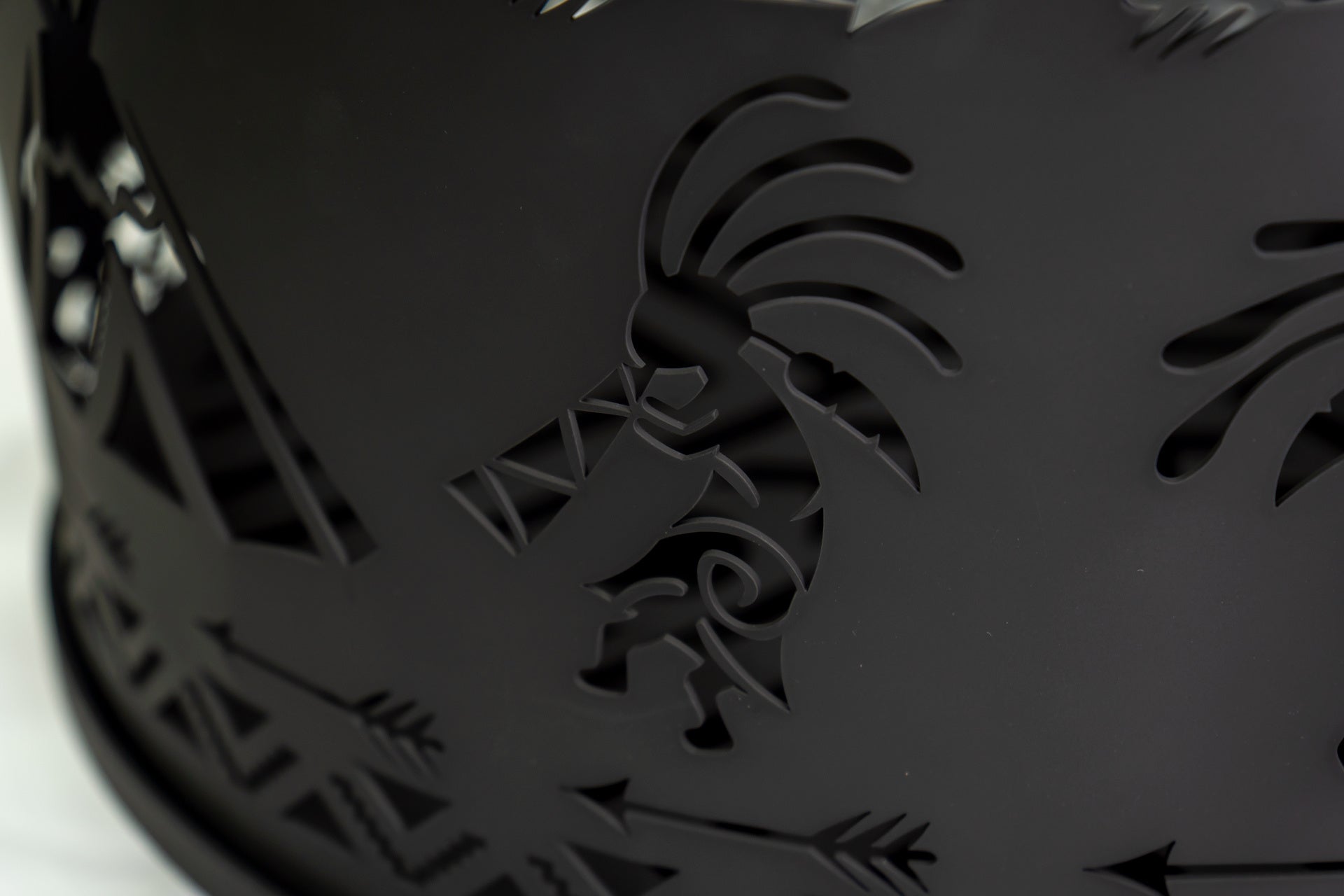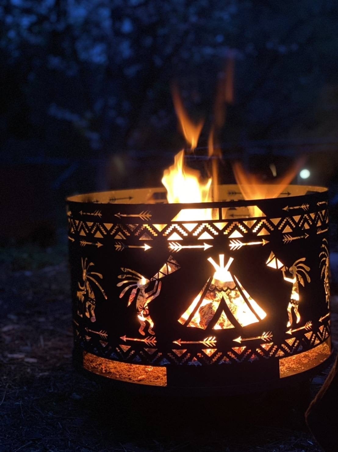 ゆらめく炎から浮かび上がるココペリ柄が焚き火を囲む人々の心を癒してくれます。