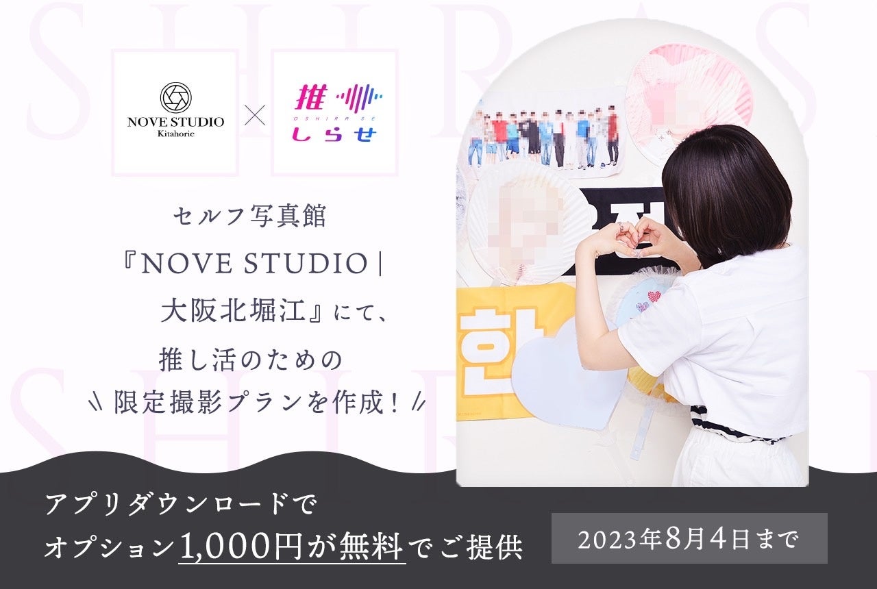 ご予約はInstagramのDMにて「推し活プラン」とご連絡ください。店頭にて、スタッフが事前登録を確認いたします。:https://instagram.com/nove__studio?igshid=MzRlODBiNWFlZA==