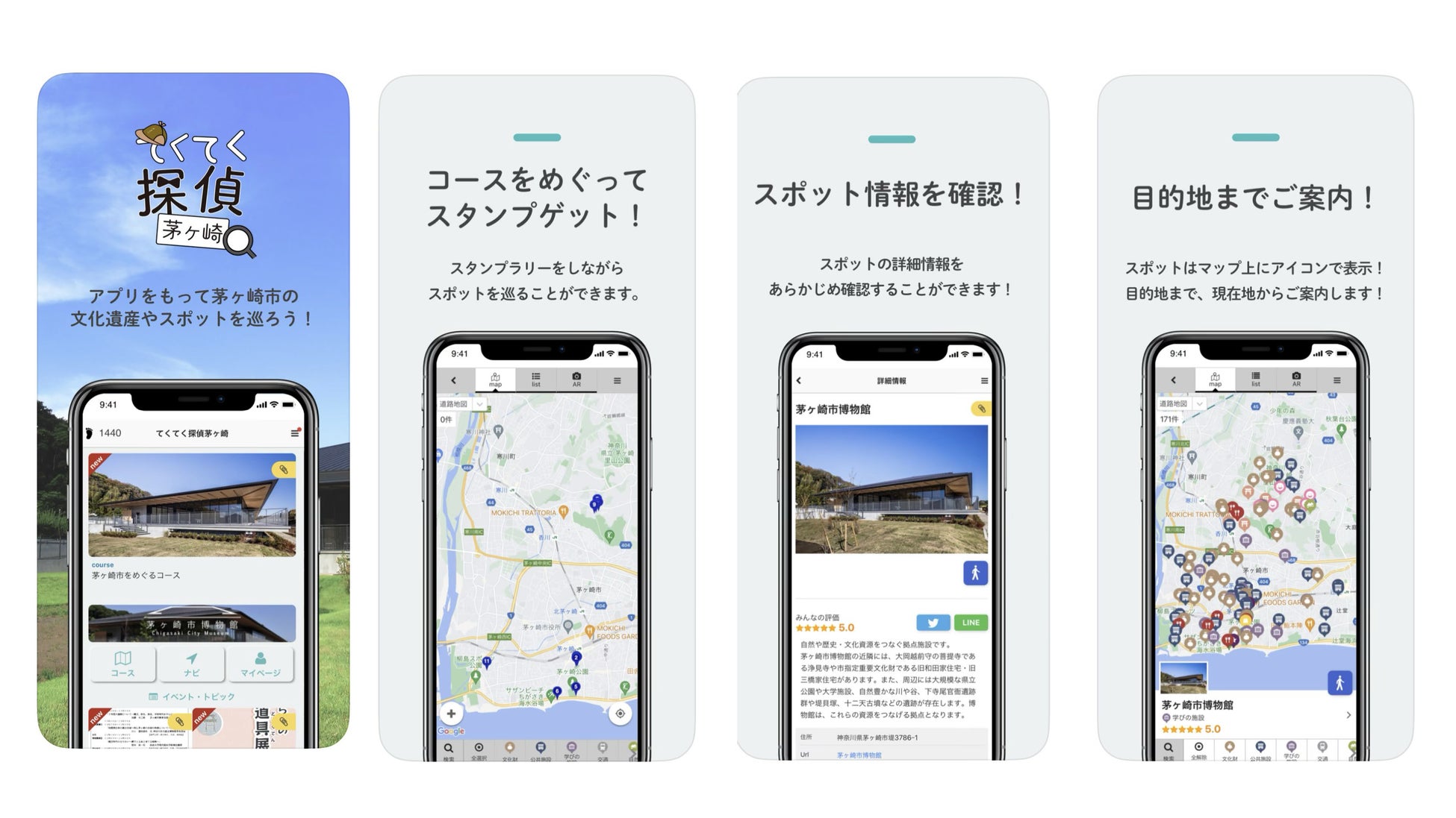 同アプリは、マップのナビ機能を利用した文化財や文化施設巡り、クイズ付きスタンプラリーなど、茅ヶ崎の自然や歴史・文化を学びながら、まち歩きが楽しめます。