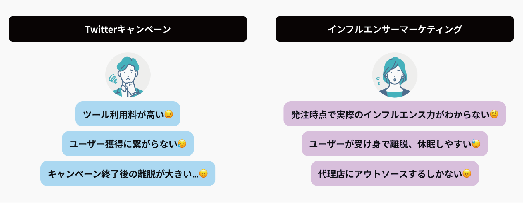 マーケティングツールや代理店利用が必須となりコストがかかる中、取り組める施策は認知獲得には有効であるもののコンバージョン獲得には繋がりにくく、効果も一時的です。企業は継続的な露出機会の獲得に難航しています。