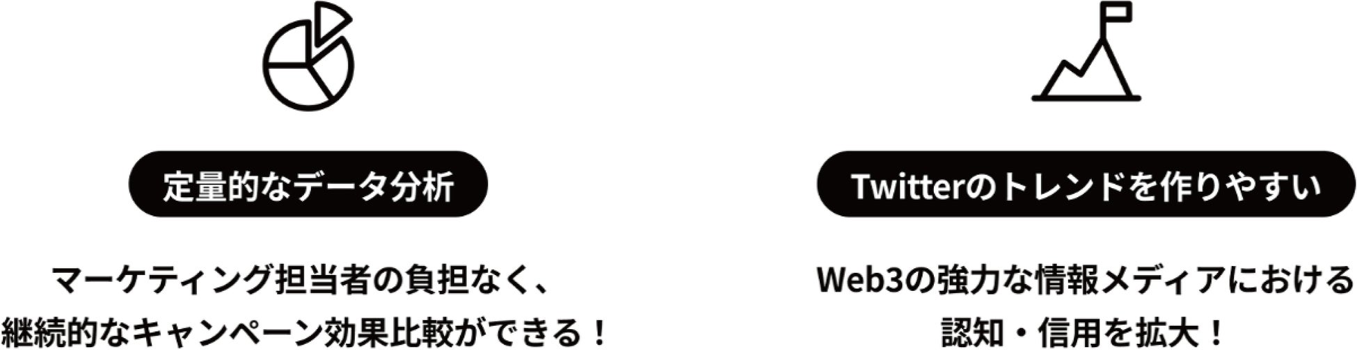 Web3特化型マーケティングSaaSツールです。Twitterでの従来のフォロー&リツイートキャンペーン、インスタントウィンキャンペーンはもちろんのこと、ソシャマ独自のポイント式ハッシュタグキャンペーンの機能を提供しています。コミュニティの力でトレンドを生み出せる唯一のツールです。